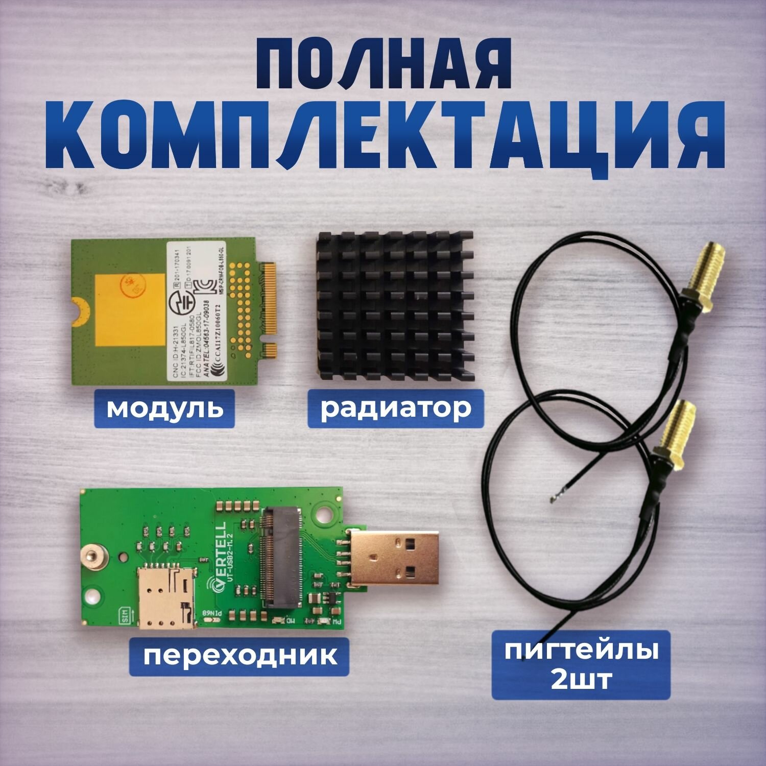 Купить Комплект модем Fibocom L850-GL, плата, пигтейлы, радиатор