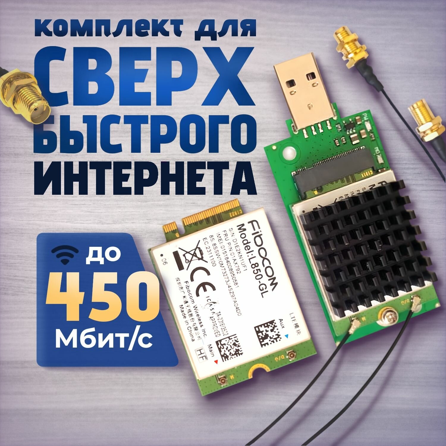 Комплект модем Fibocom L850-GL, плата, пигтейлы, радиатор интересное: