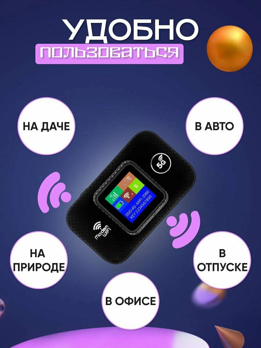 Wi-Fi с поддержкой SIM-карты, карманный роутер 4G/5G LTE, работает от встроенного аккумулятора черный интересное: