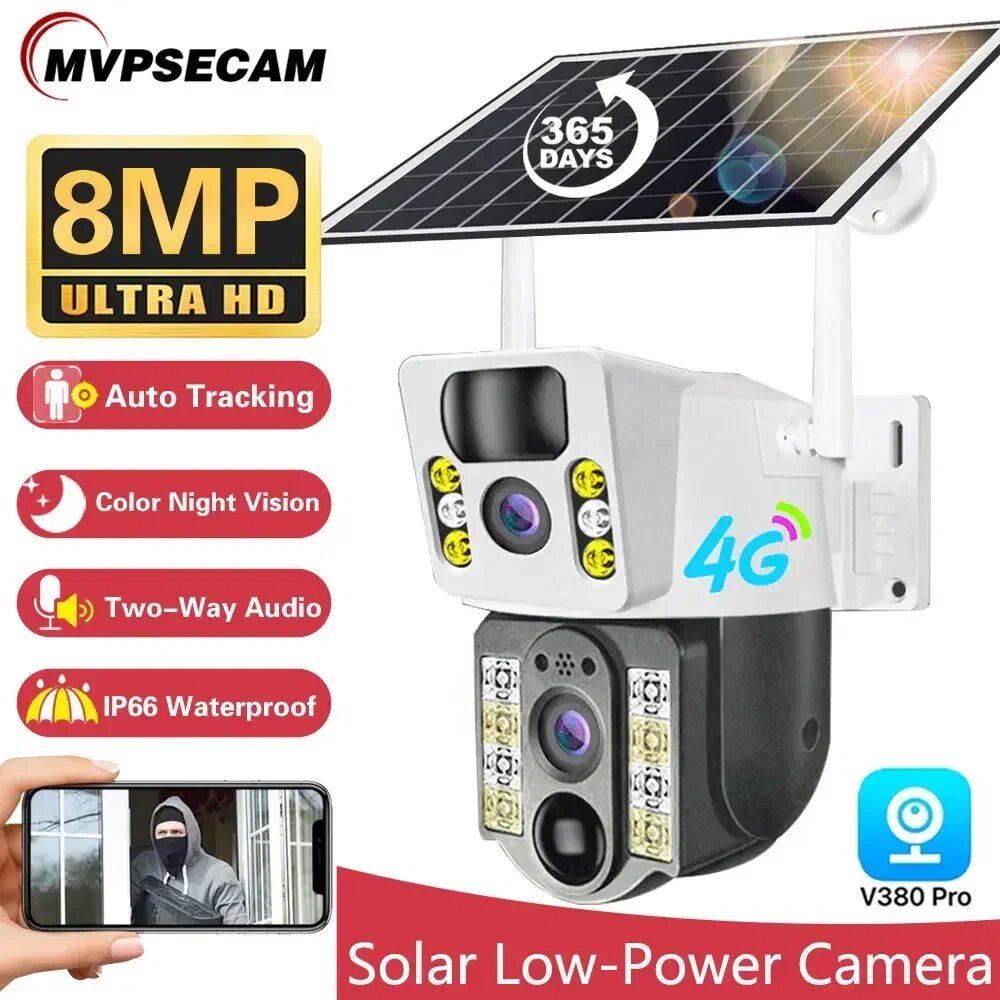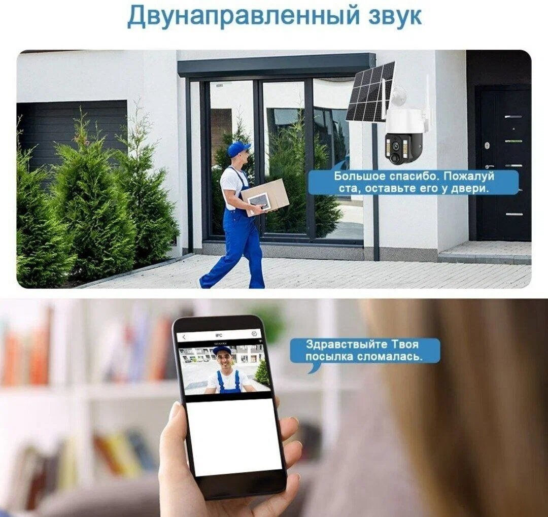 Уличная Двойная камера 4G LTE, с микрофоном, ночной съемкой, датчик движения/на солнечных батареях, в комплект