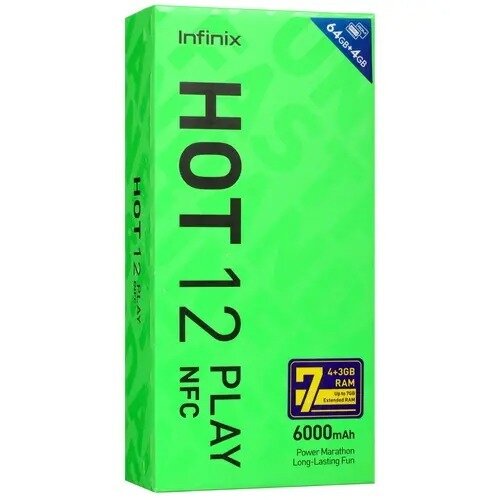 Смартфон Infinix HOT 12 PLAY NFC, Standard, Infinix, Hot 12 Play, Смартфон, Голубой, 4ГБ, 64ГБ, russia, новый, 01.04.2022