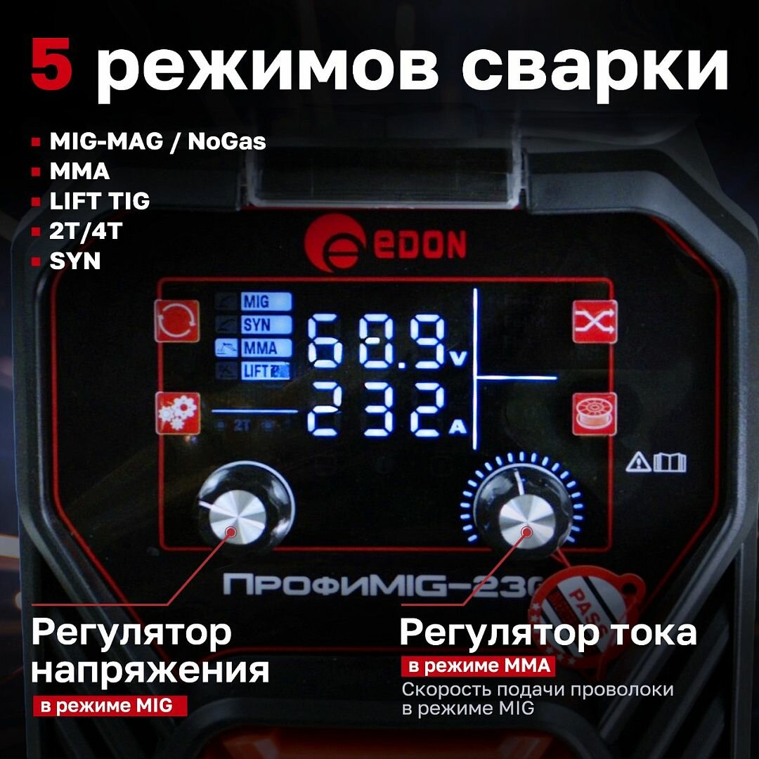 Купить Сварочный полуавтомат EDON ПрофиMIG-230 7кВт 20-200А, MMA 9,0кВт