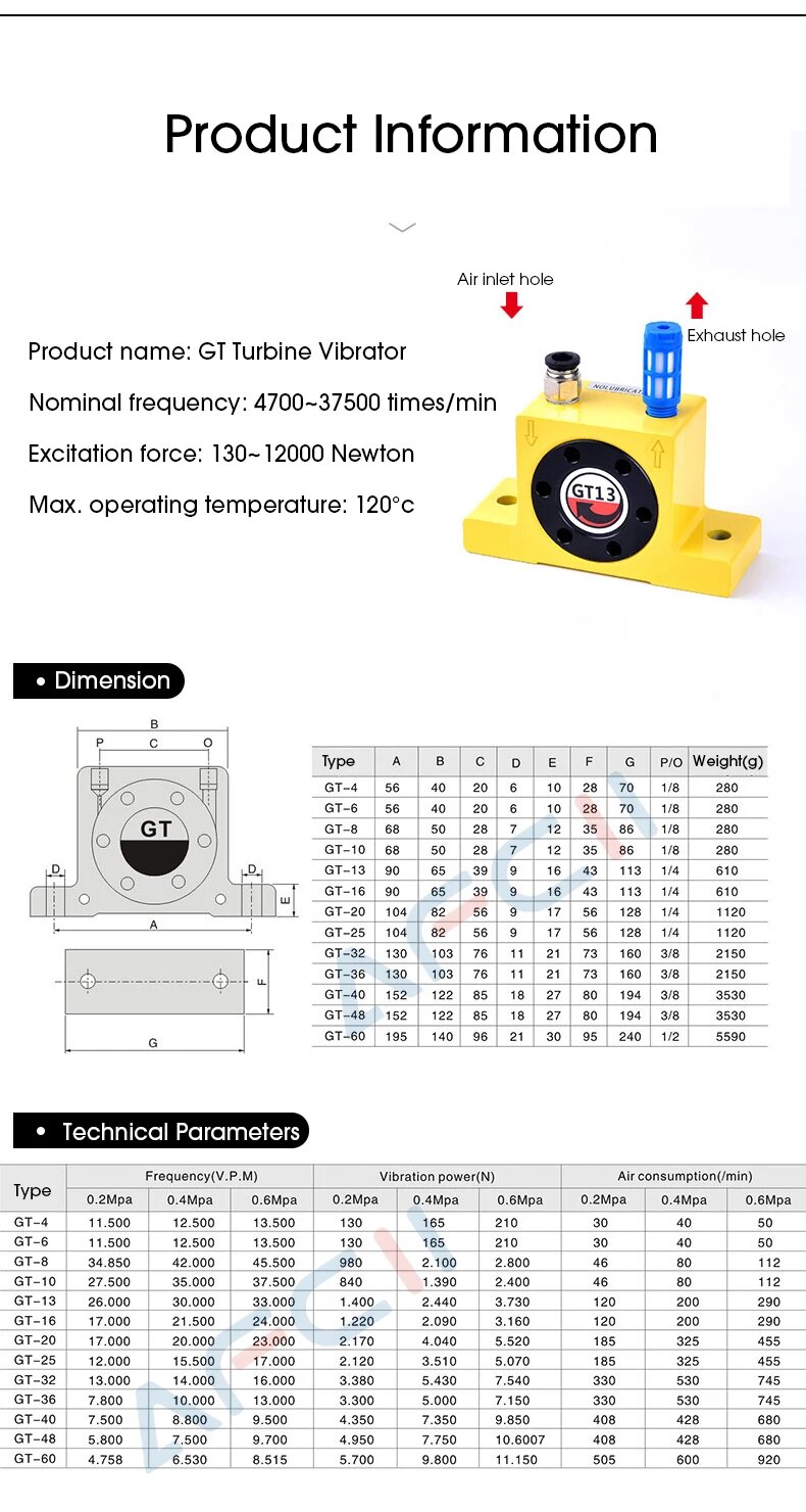 Промышленный пневматический вибратор, шаровой генератор типа K, GT8, GT10, GT13, GT16, GT20, GT25, GT30, GT32, GT36, GT40