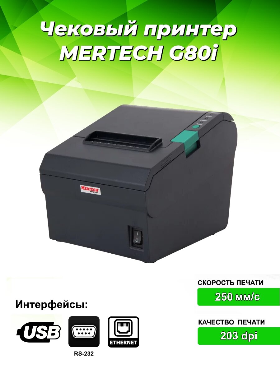 Чековый принтер MERTECH G80i RS232-USB, Ethernet Black интересное: