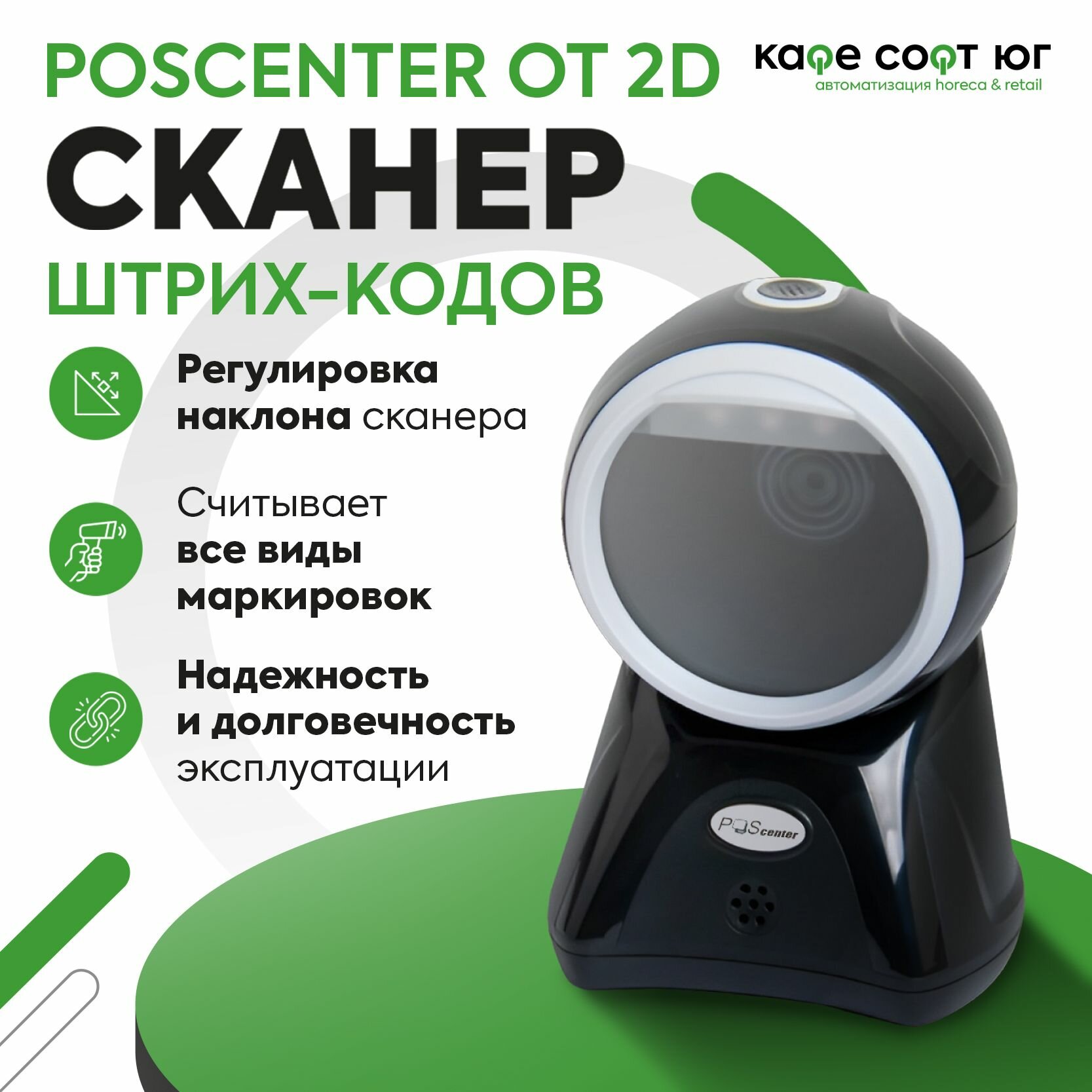 Купить Сканер штрих-кода Poscenter OT 2D, настольный, USB, черный, с кабелем 1,5 м