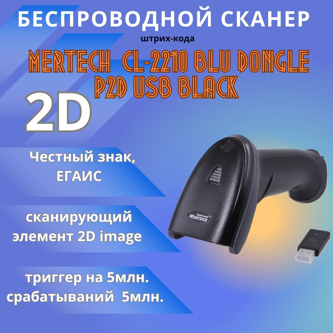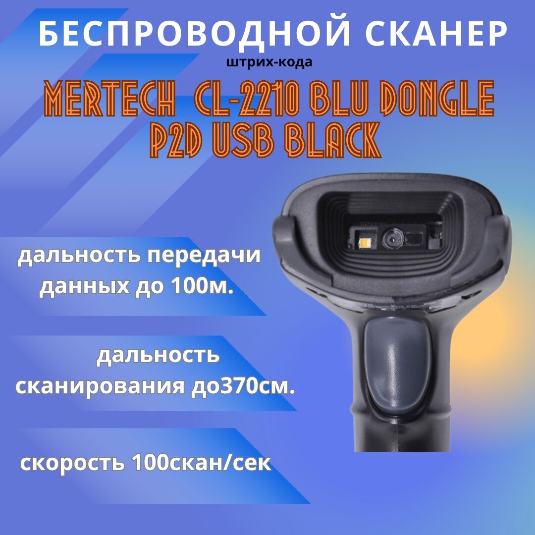 Беспроводной сканер штрих кодов Mertech CL-2210 BLE Dongle P2D USB черный интересное: