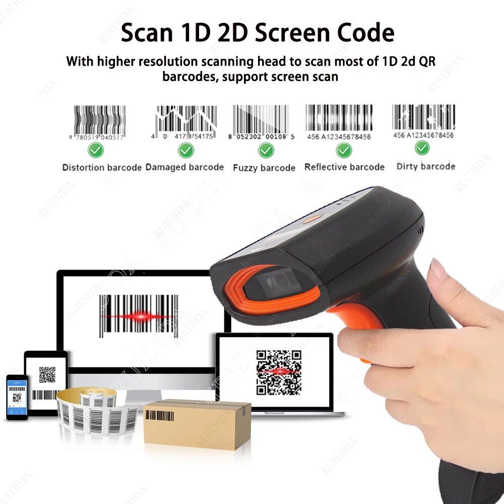 Беспроводной сканер штрих-кодов, проводной 2D сканер QR-кодов, ручной считыватель штрих-кодов, 2d считыватель qr-кодов, Bluetooth сканер, RV8W--Wireless