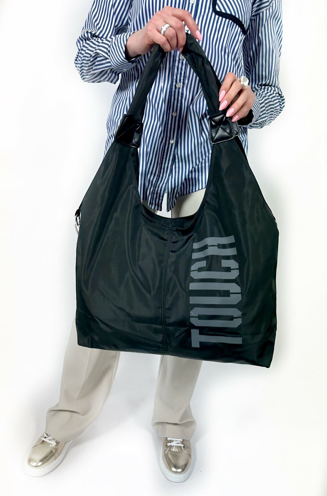 Сумка дорожная TOUCH плотная две ручки, широкий длинный ремень черная