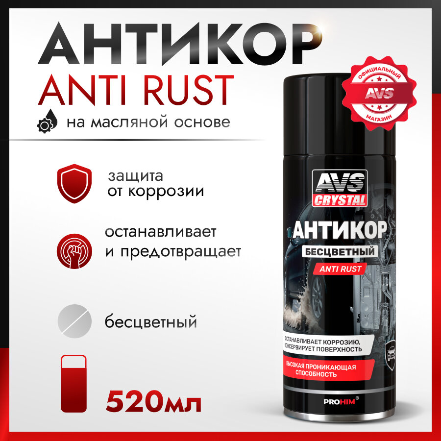Антикоррозийное покрытие для авто AVS Anti rust антикор бесцветный, 520 мл интересное: