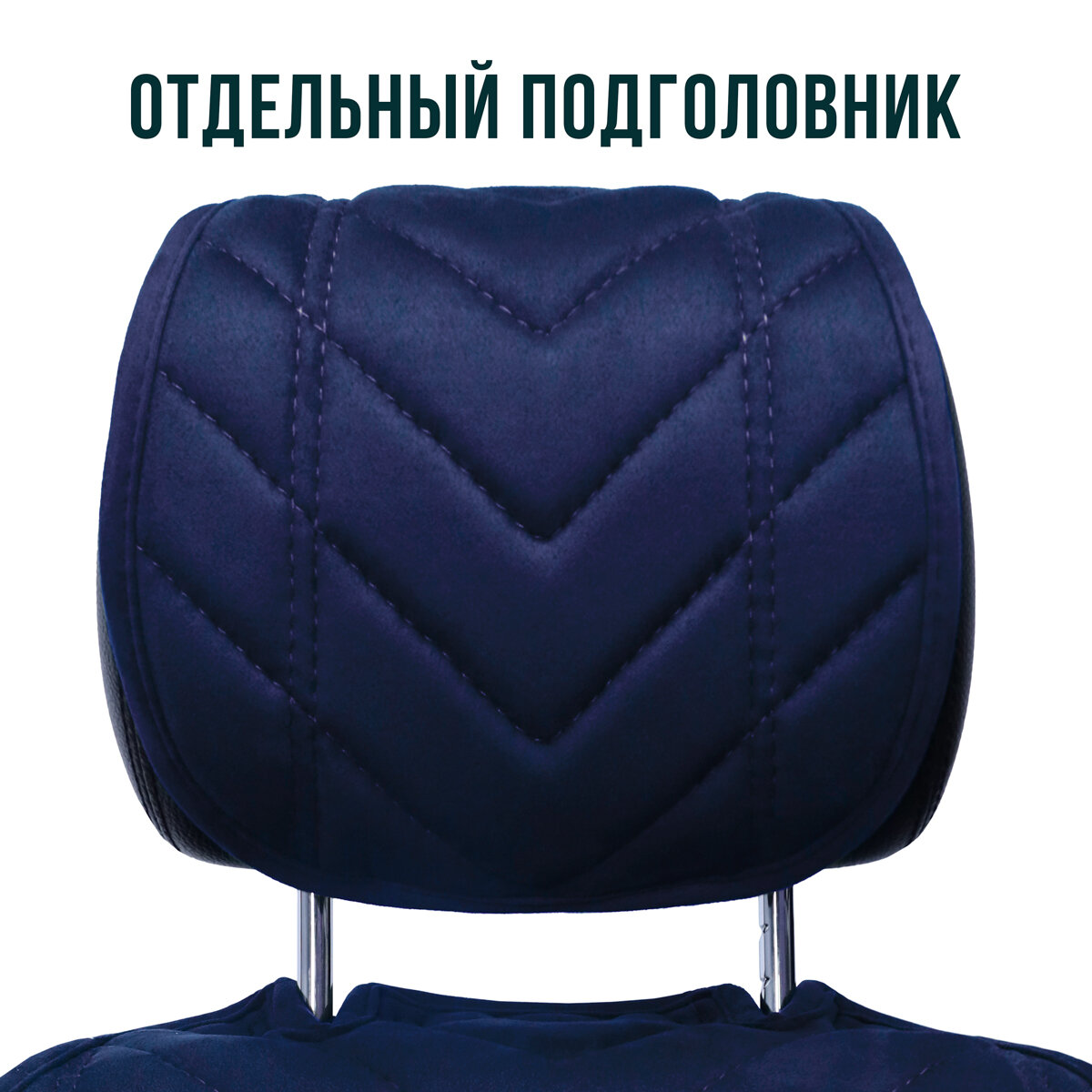 Полный комплект накидки из алькантары на сиденья автомобиля. Модель L SV PK. Тёмно-синий