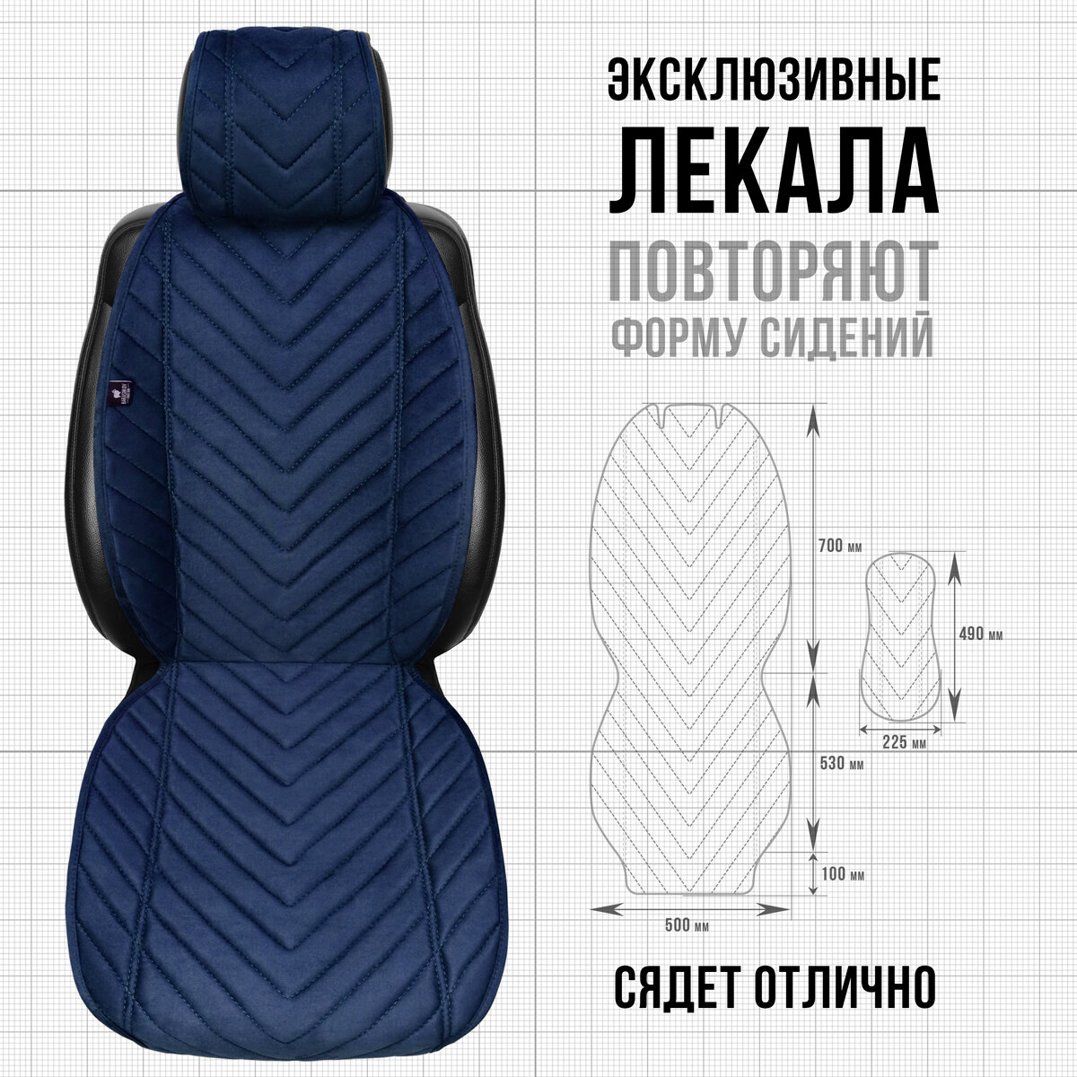 Пара накидок из алькантары на переднее сиденье автомобиля. Модель L SV. Тёмно-синий