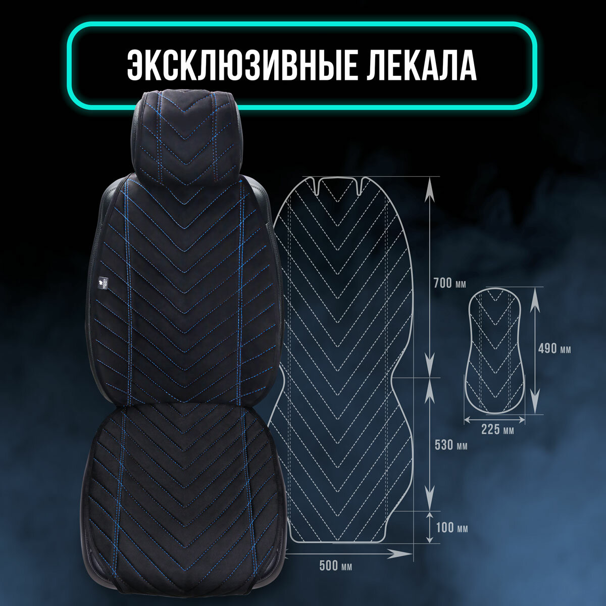 Пара накидок из алькантары на переднее сиденье автомобиля. Модель L SV. Тёмно-синий