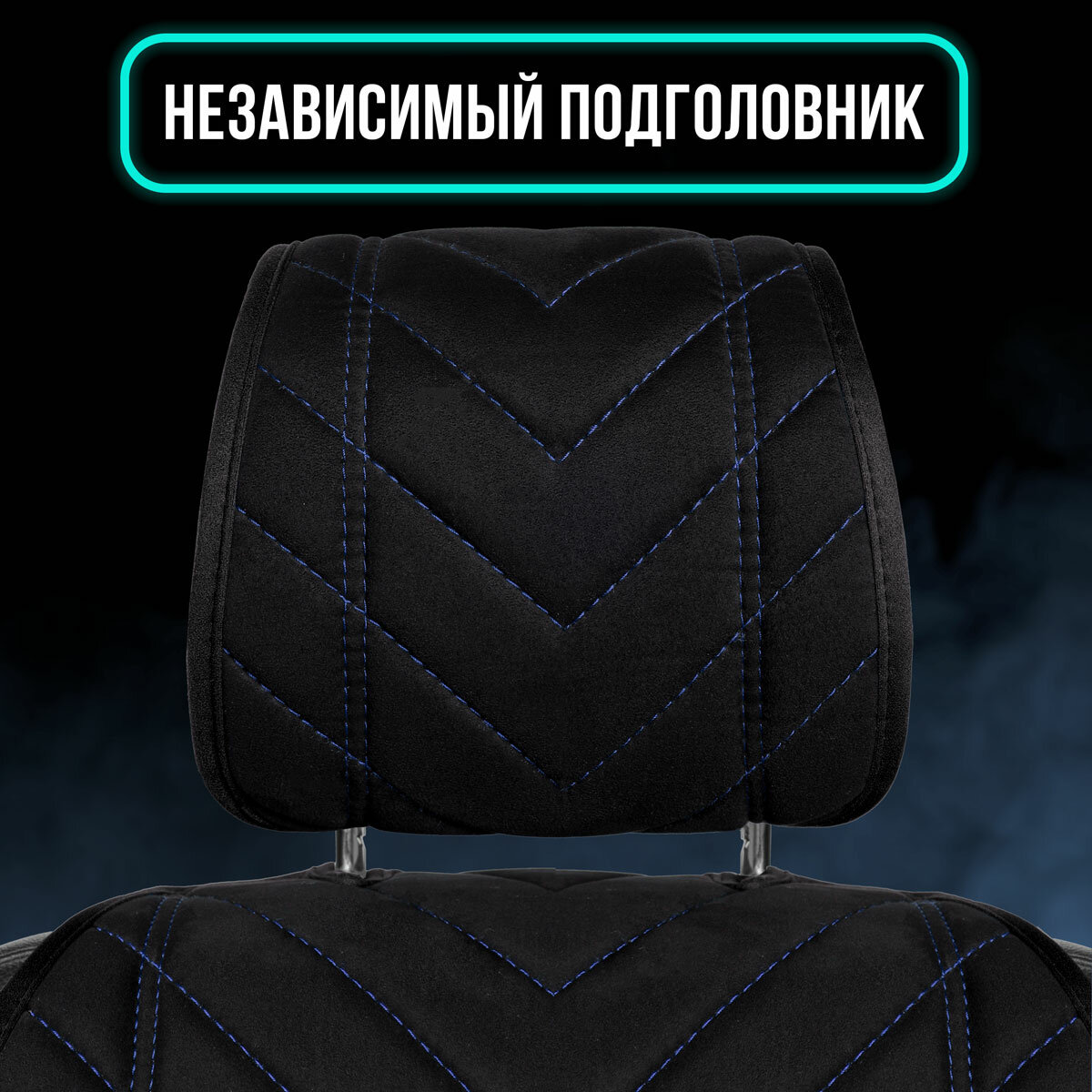 СохранитьПолный комплект накидки из алькантары на сиденья автомобиля. Модель L SV PK.Чёрный/синяя строчка интересное: