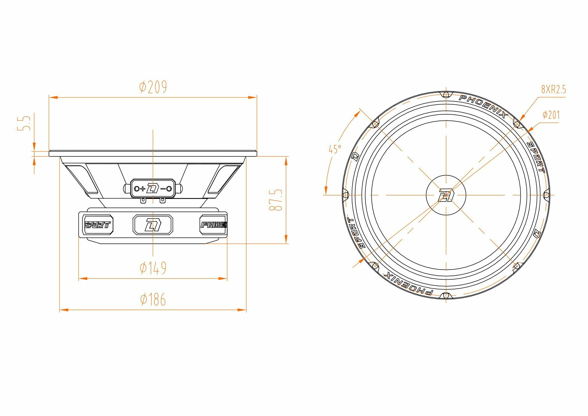 Cреднечастотная акустика (эстрадная) DL Audio Phoenix Sport 200 8 дюйм (20 см), 420Вт