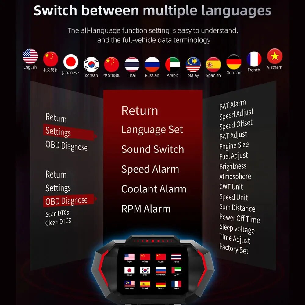 Купить Многофункциональный цифровой GPS спидометр с интерфейсом OBD, размер 90x53x26 мм, P24