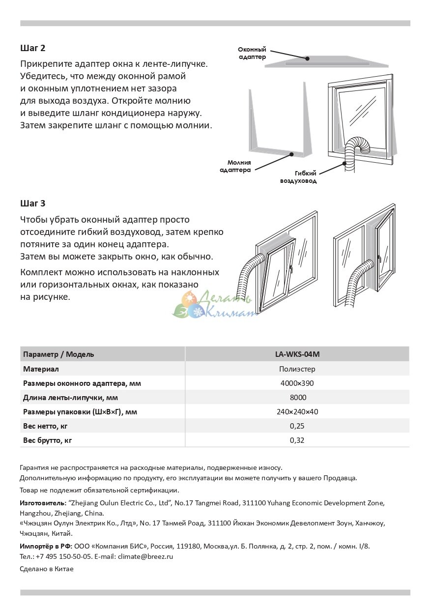 | Подробная комплектация | Оконный адаптер; лента-липучка на клеевой основе |