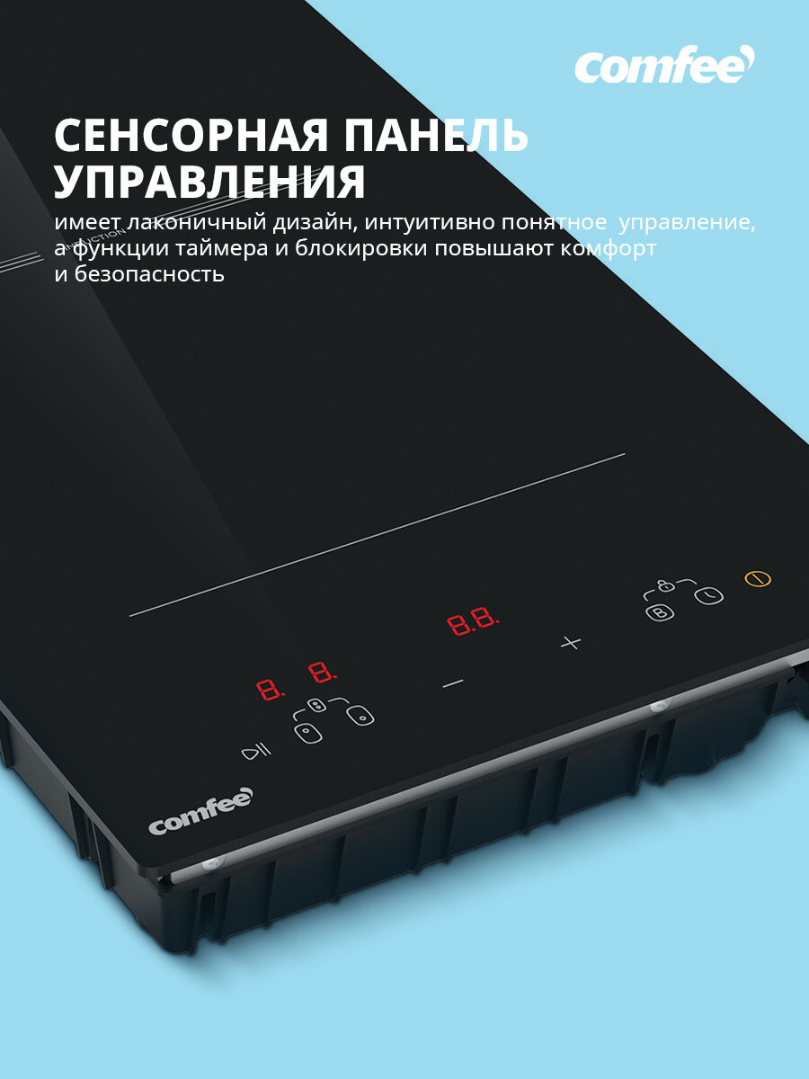 Индукционная варочная панель Comfee CIH311, инвертор, единая зона нагрева Flex, ширина 29 см, 9 уровней мощности, Boost, таймер, блокировка, автообнаружение посуды, стеклокерамика, черный интересное: