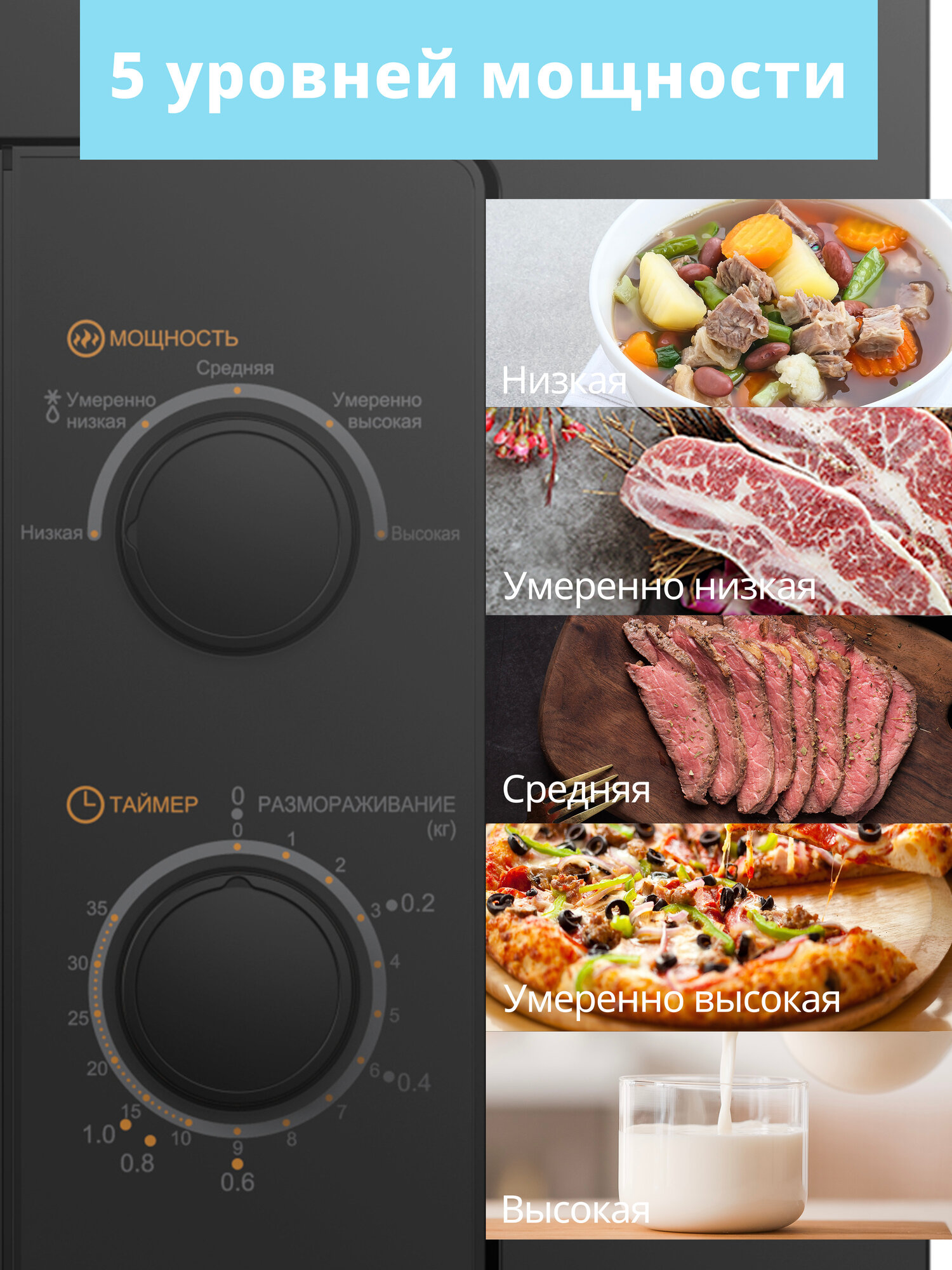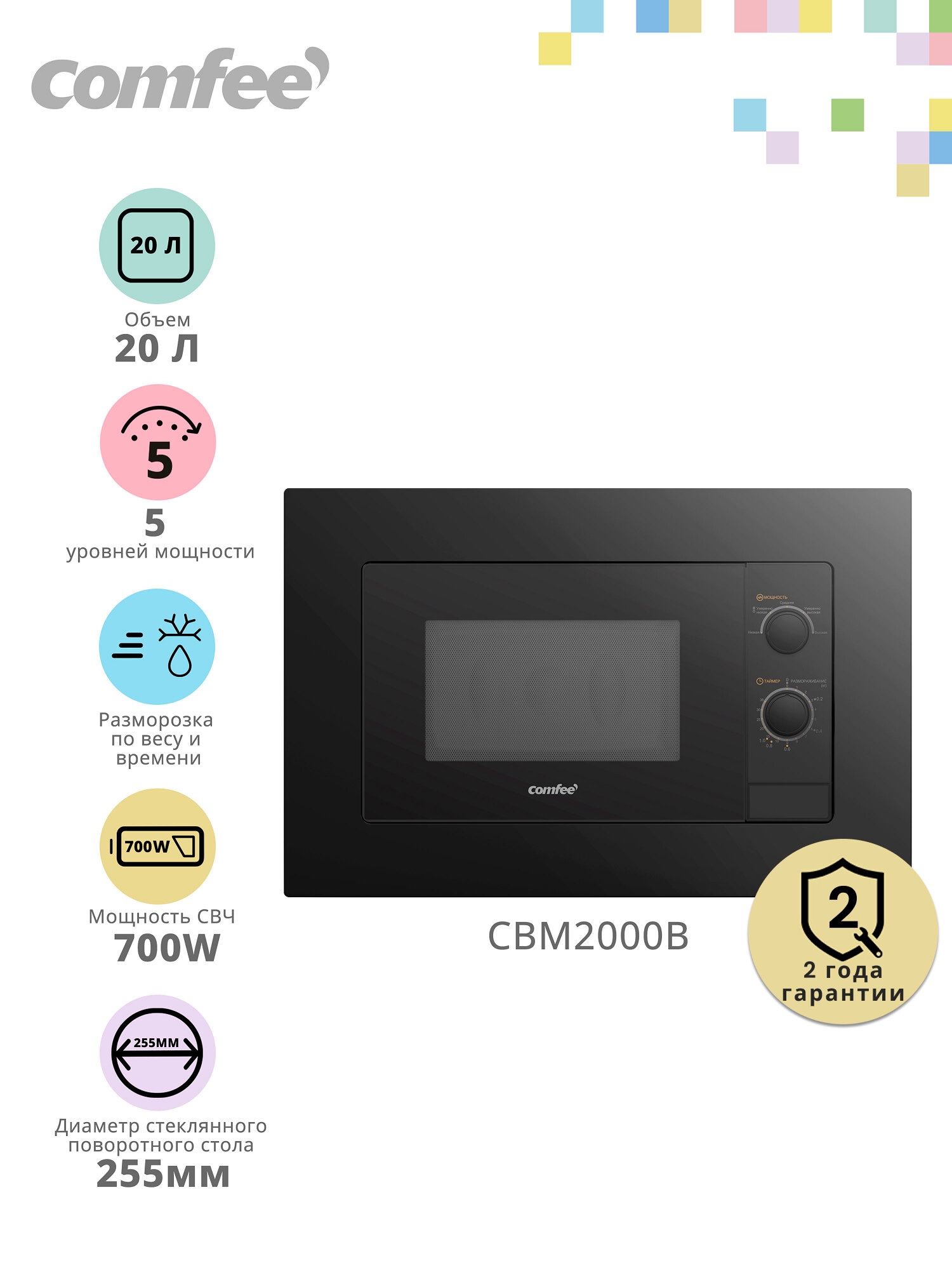 Купить Встраиваемая микроволновая печь Comfee CBM2000B, 700 Вт, 5 уровней мощности, поворотный стол, камера 20 л, размораживание, черное стекло, эмалевое покрытие камеры