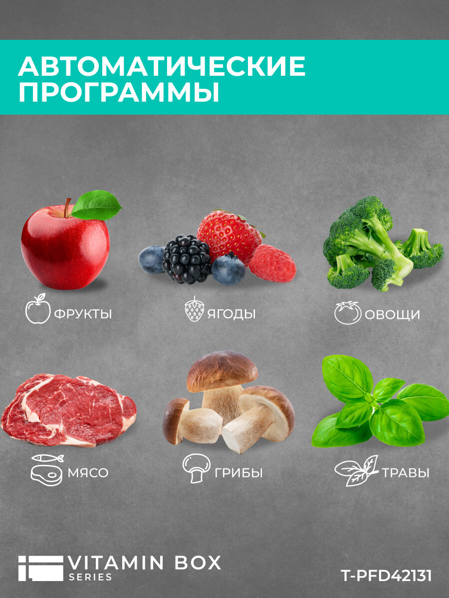 Сушилка для овощей и фруктов Timberk T-PFD42131 загрузка 9 кг, 6 автоматических программ интересное:
