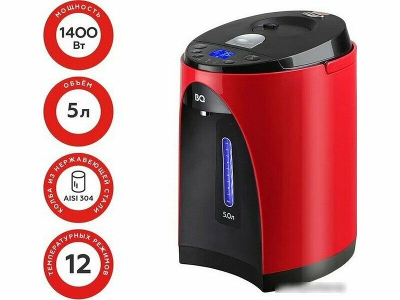 Купить Термопот BQ TP502 Красно-черный 5л / Мощность 1800 Вт / Объем 5 л / 12 режимов
