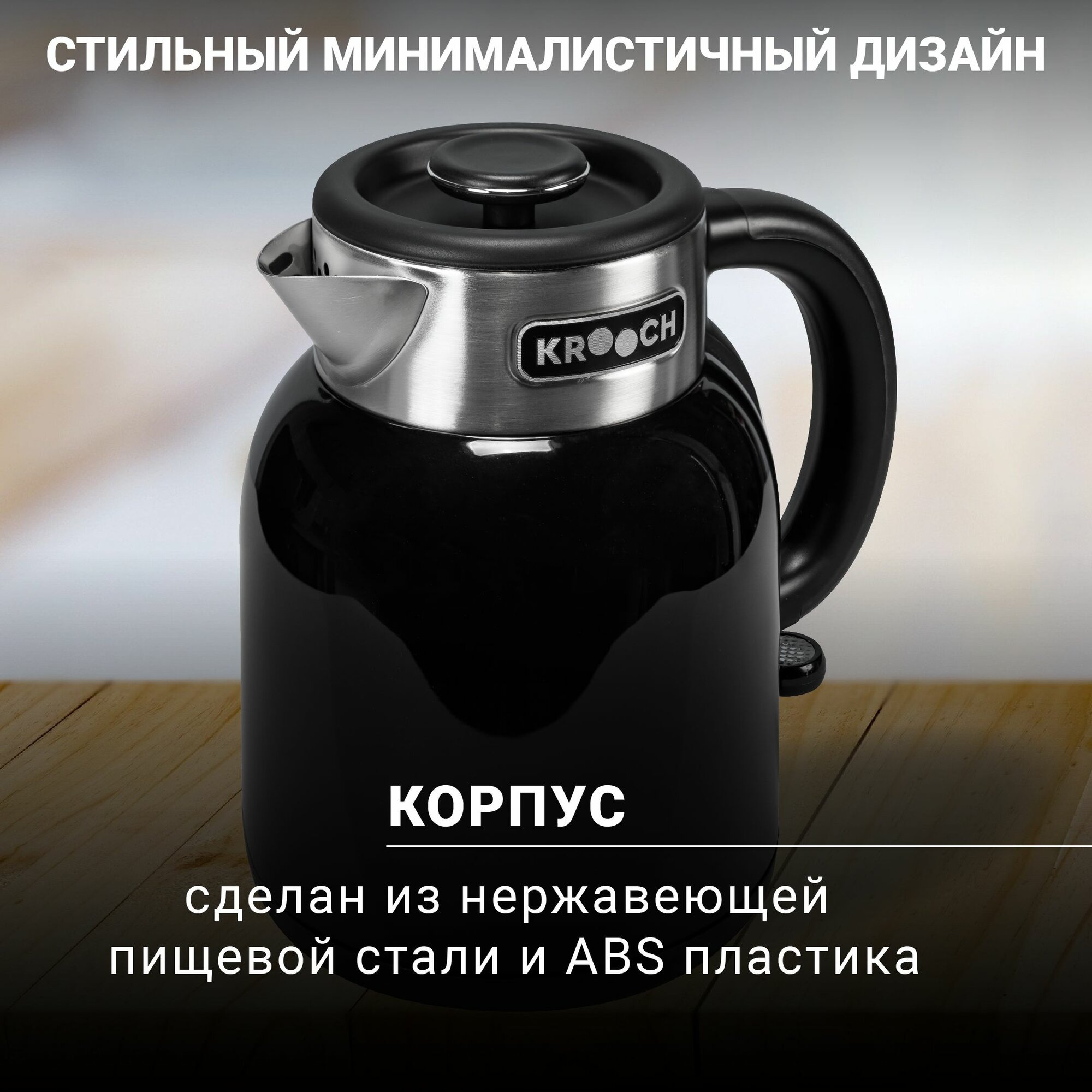 Купить Электрический чайник Krooch Hotlake, 1600 Вт, 1.5 л, нержавеющая сталь, черный
