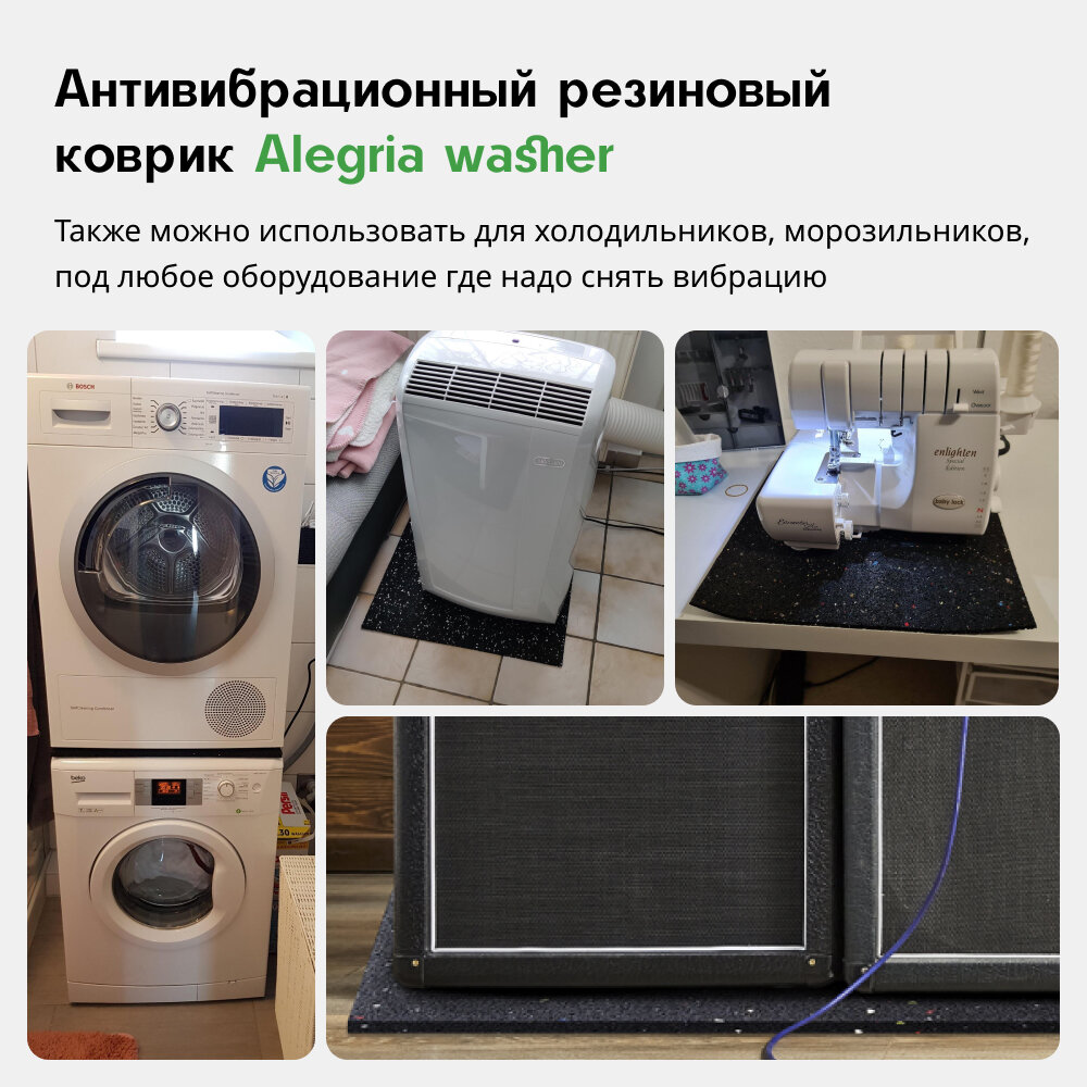 Антивибрационный резиновый коврик Alegria washer 600x400x10 мм интересное: