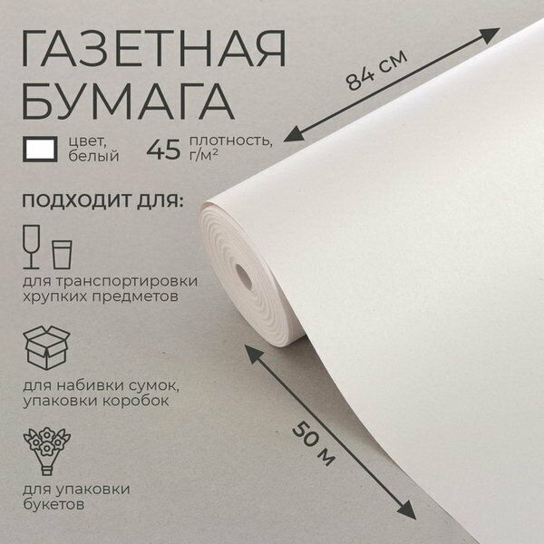 Бумага газетная 0.84 x 50 м, 45 гр/м интересное:
