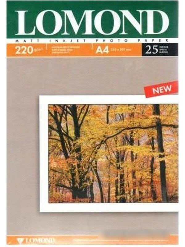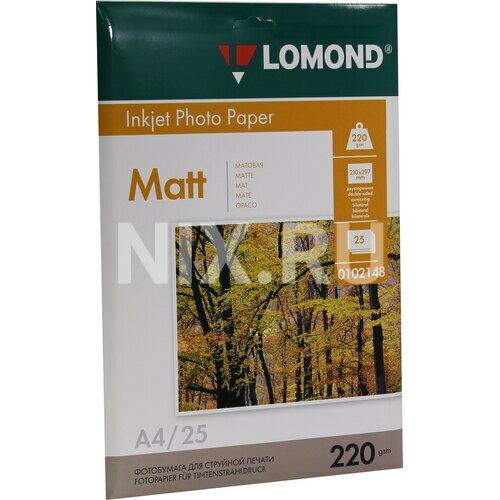 Бумага Lomond для струйной фотопечати 220 г/м2 А4 двухсторонняя матовая, 25 листов в пачке