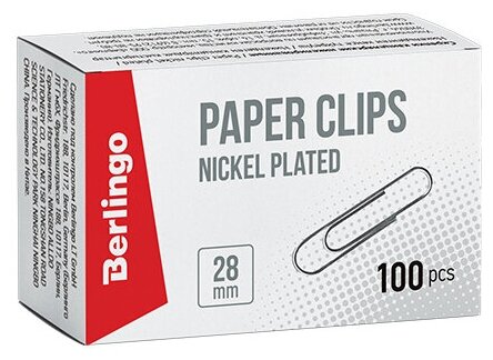 Скрепки 28мм, Berlingo, 100шт., никелированные, карт. упаковка, 115998