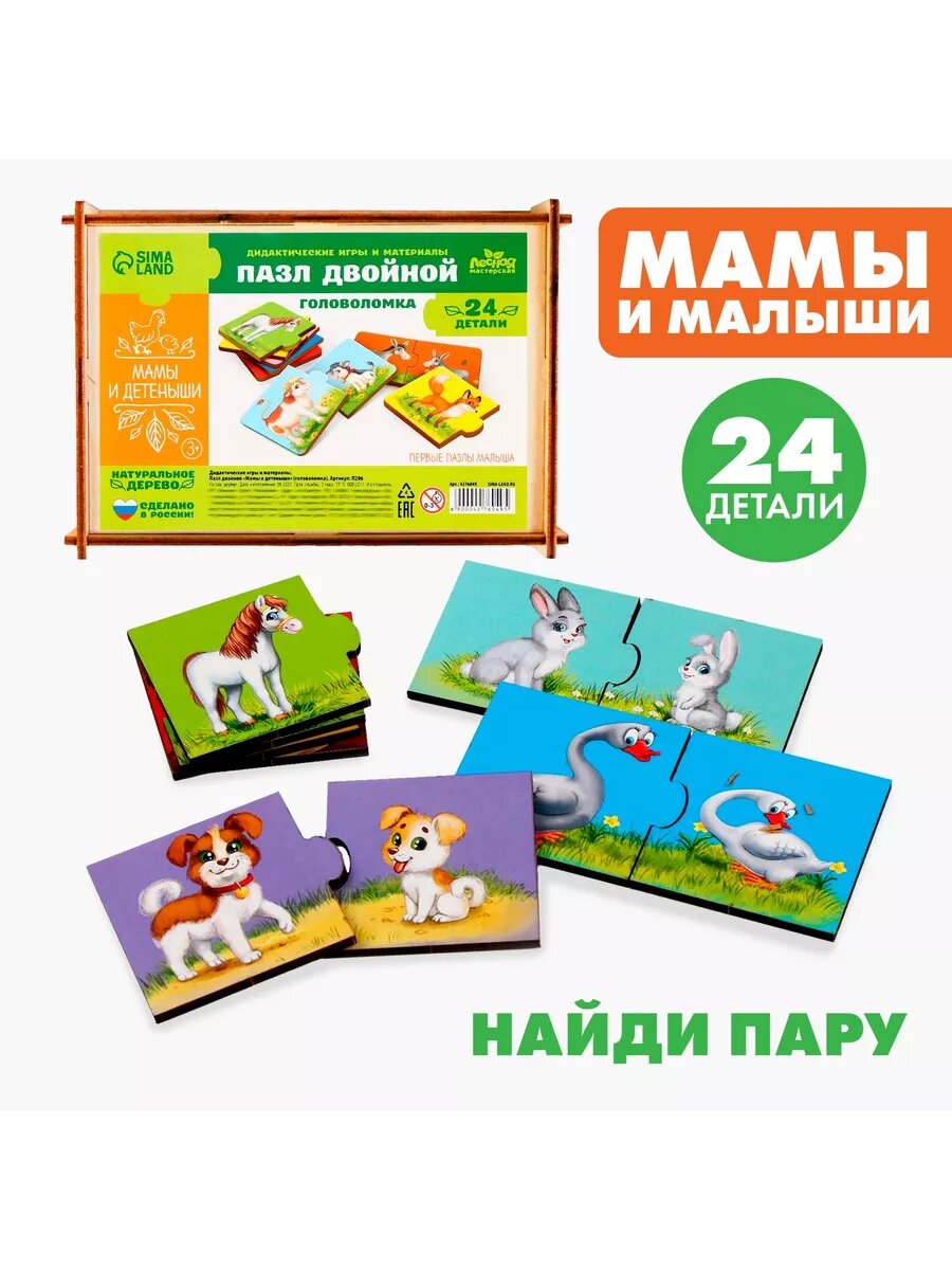Пазл двойной «Малыши и мамы» (головоломка), 12 пазлов, 24 детали интересное: