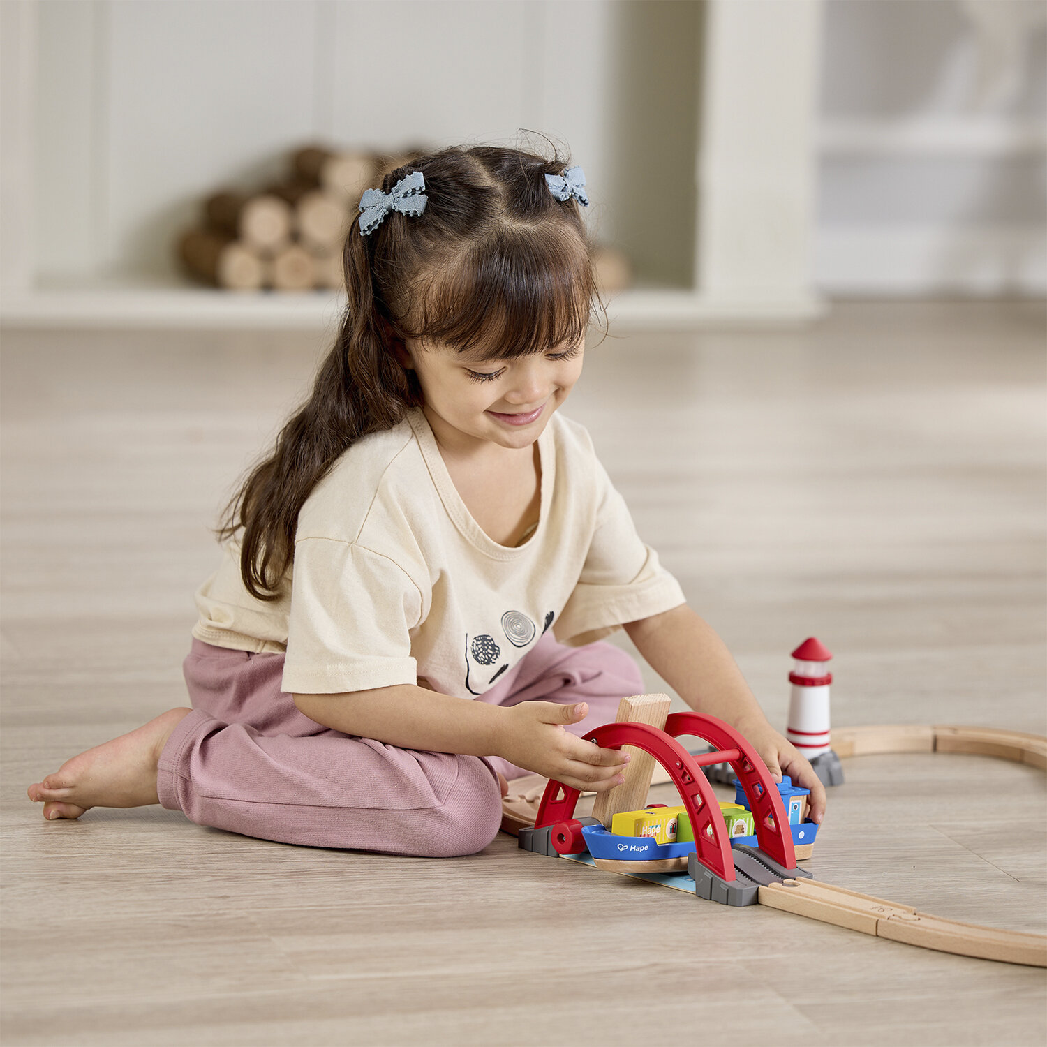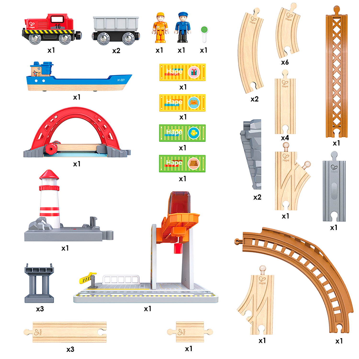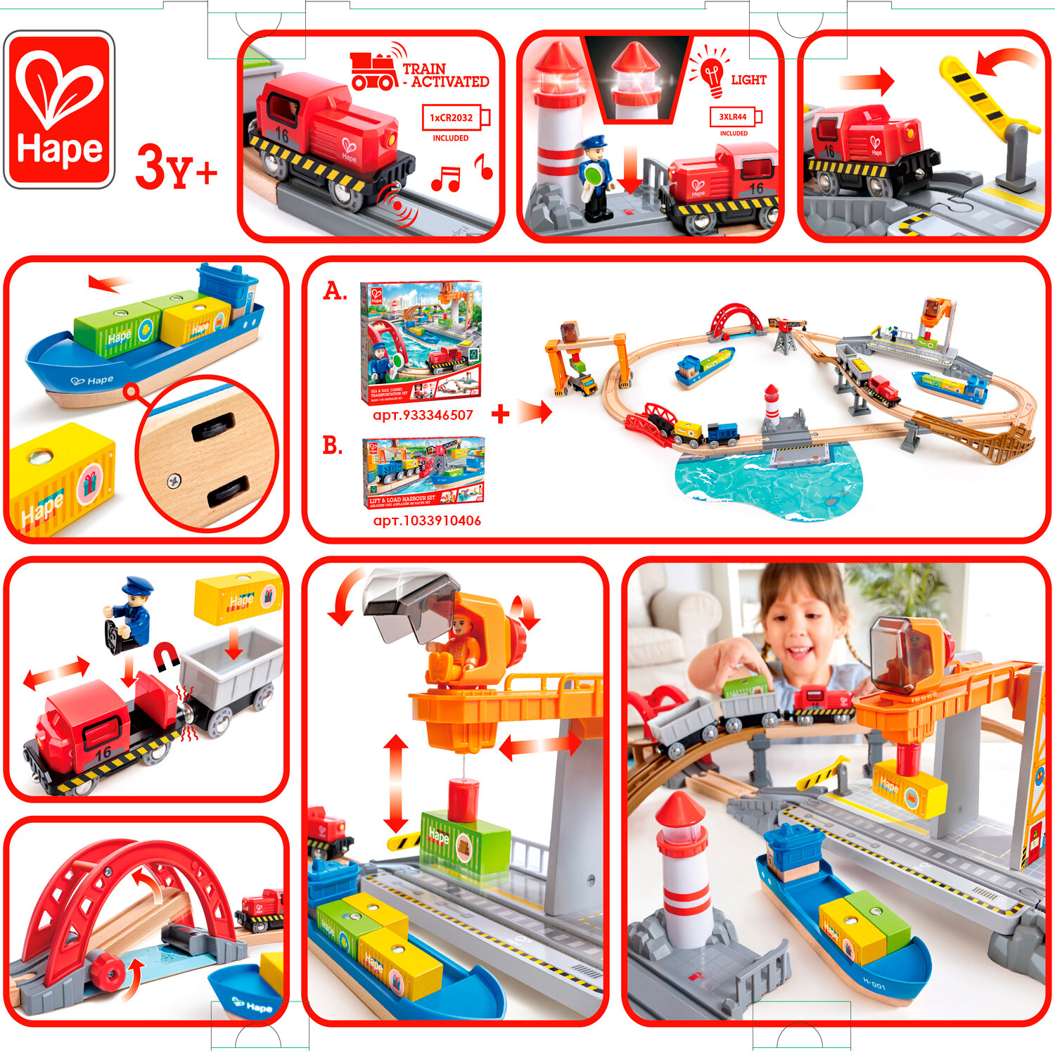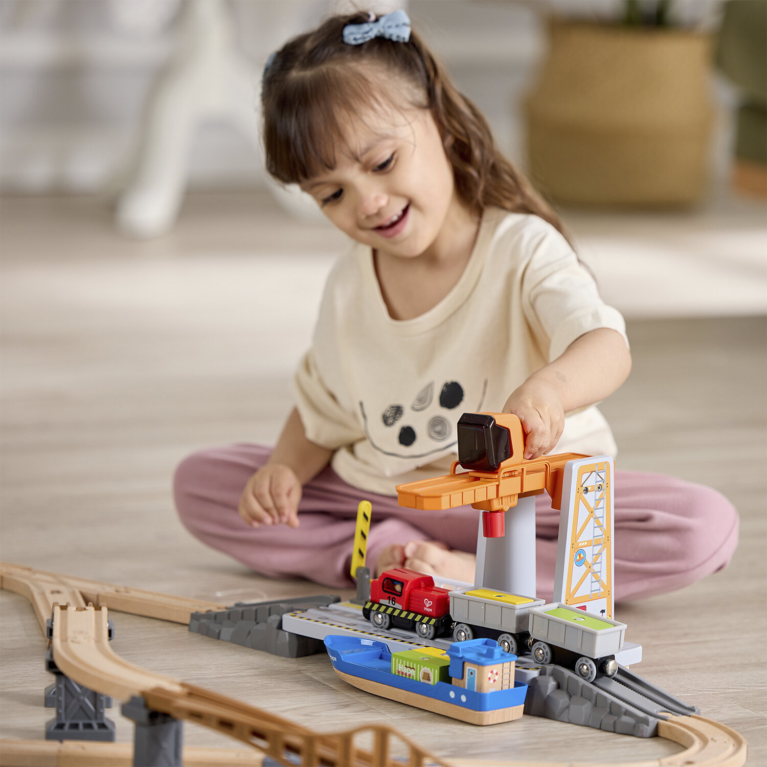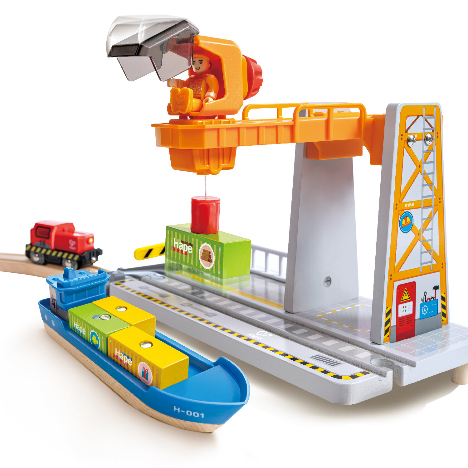 Купить Деревянная детская железная дорога Hape "Доставки груза в порту" E3790_HP