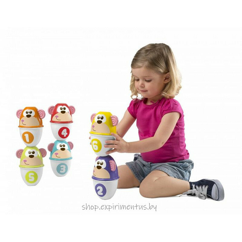 | Комплектация | 6 разноцветных кеглей-обезьянок; шар |