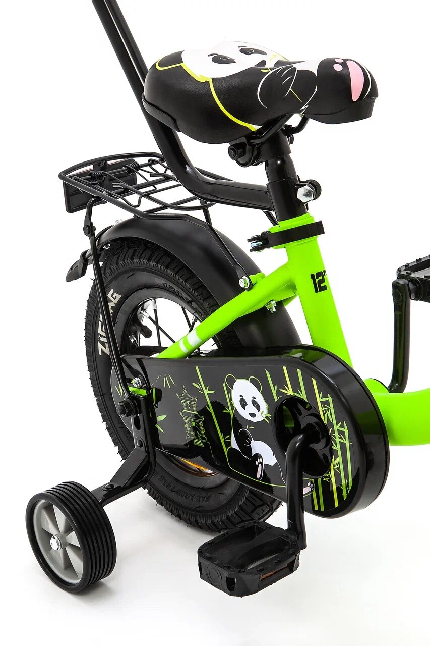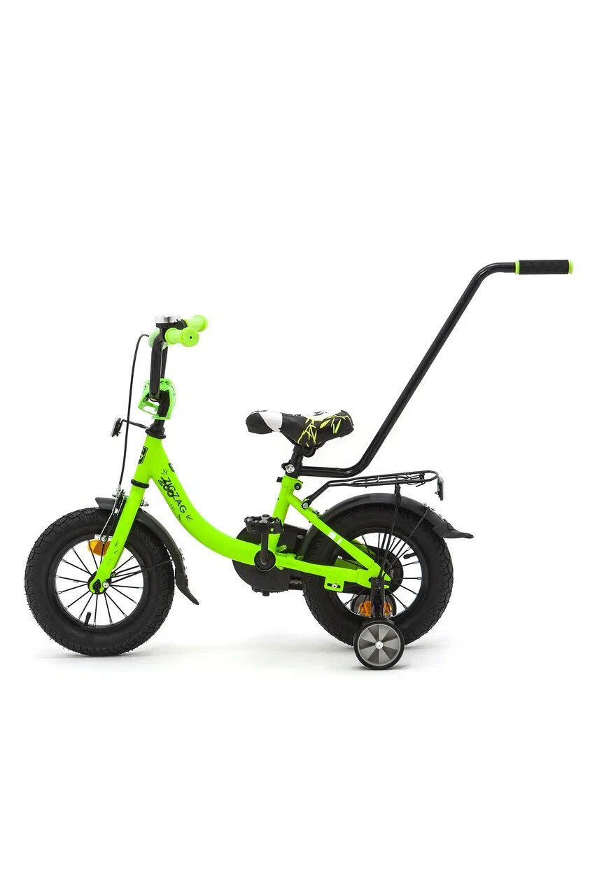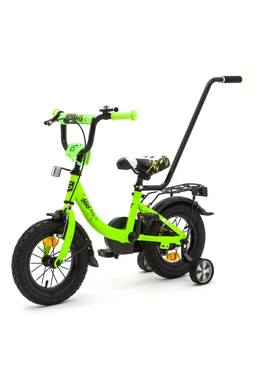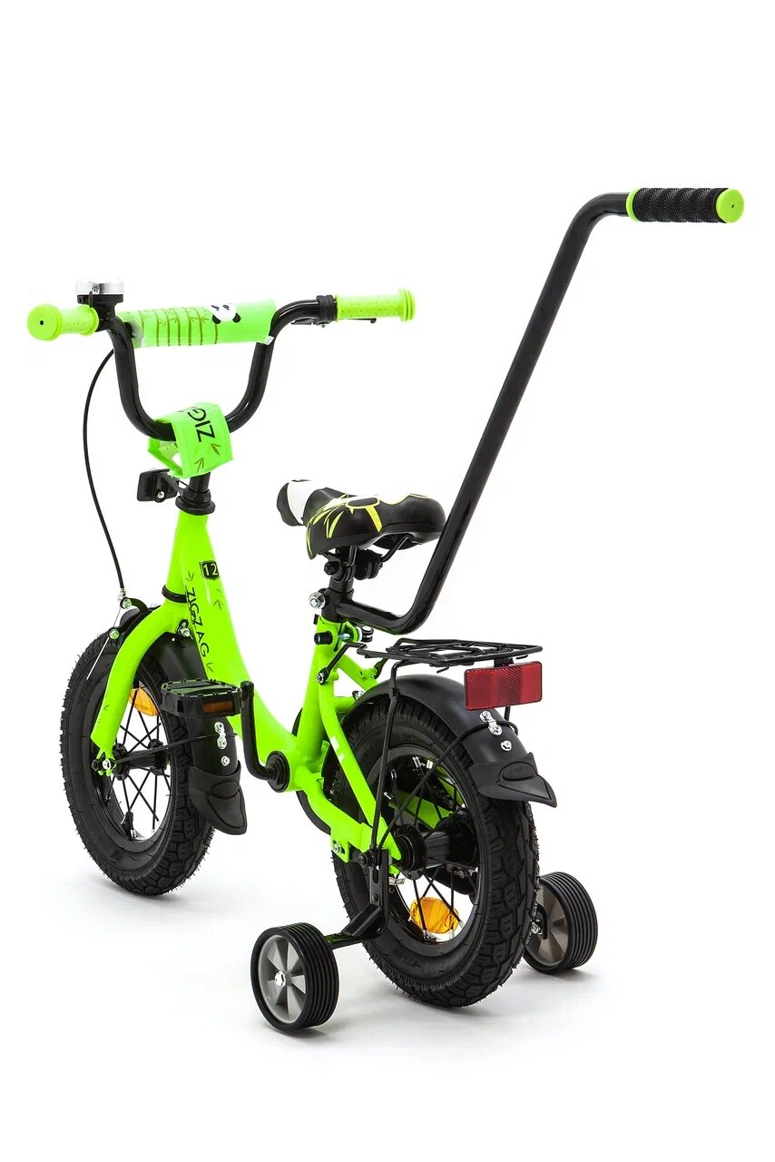 Купить Велосипед детский двухколесный 12" ZIGZAG ZOO зеленый с родительской ручкой для детей от 2 до 4 лет