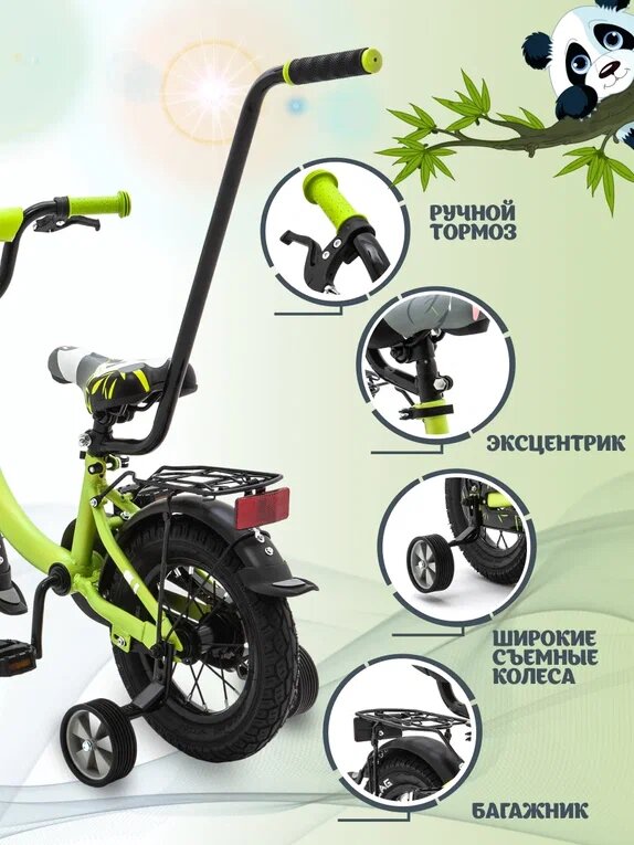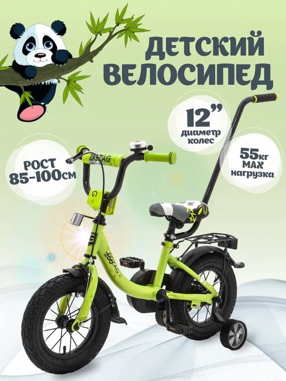Велосипед детский двухколесный 12" ZIGZAG ZOO зеленый с родительской ручкой для детей от 2 до 4 лет интересное: