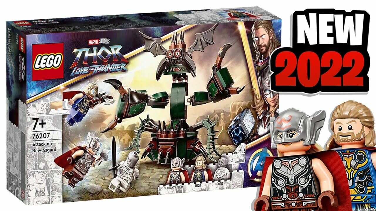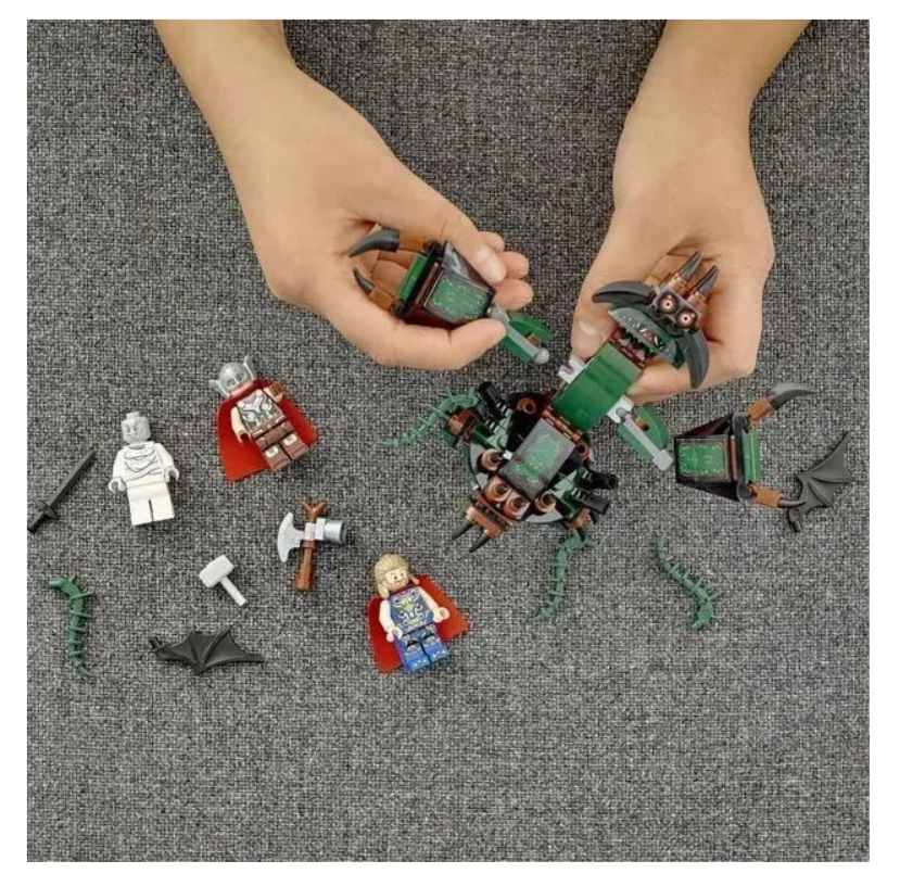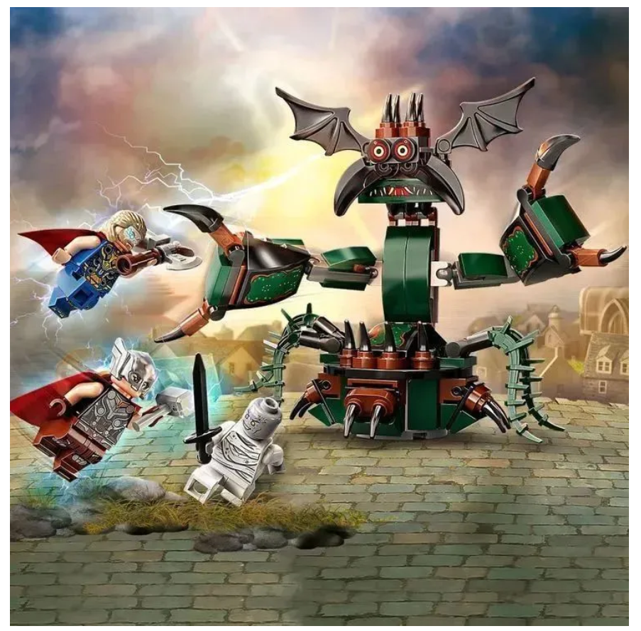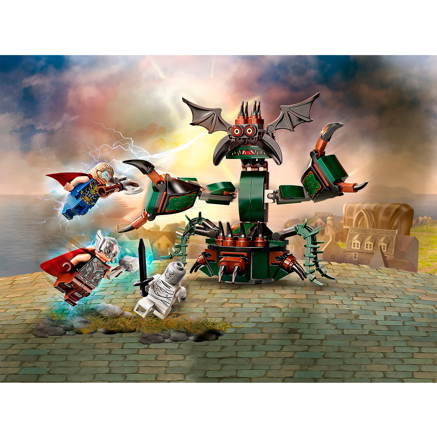 LEGO 76207 Marvel: Атака на Новый Асгард, монстр и 3 мини-фигурки с Громобой и Молотом, игрушка Мстители из фильма Тор: Любовь и гром