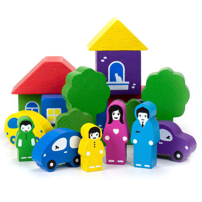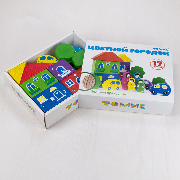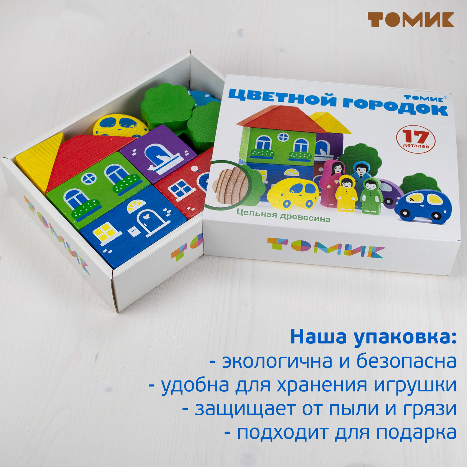 Конструктор деревянный Томик Цветной городок 17 деталей