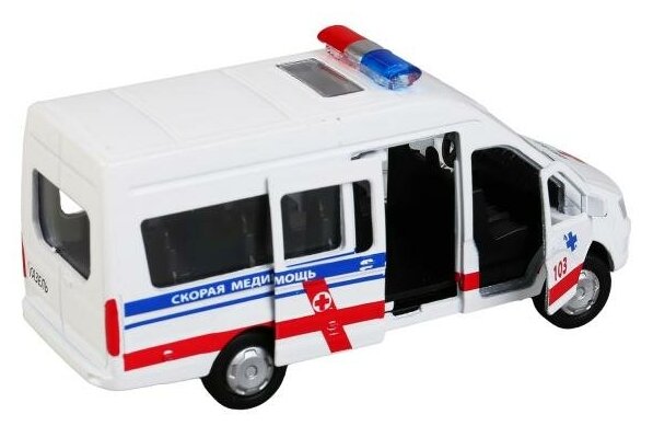 Машинка детская Газель Некст Реанимация 22.5 см, Технопарк, пластик, открываются двери и кузов, свет и звук