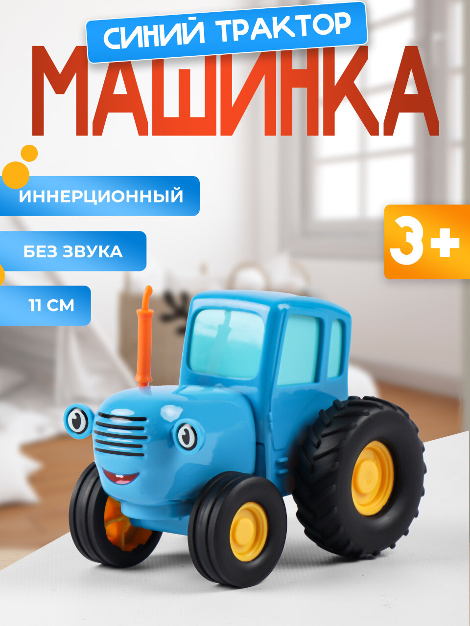 Синий трактор 11см синий без света И звука металл+пластик инерция Технопарк