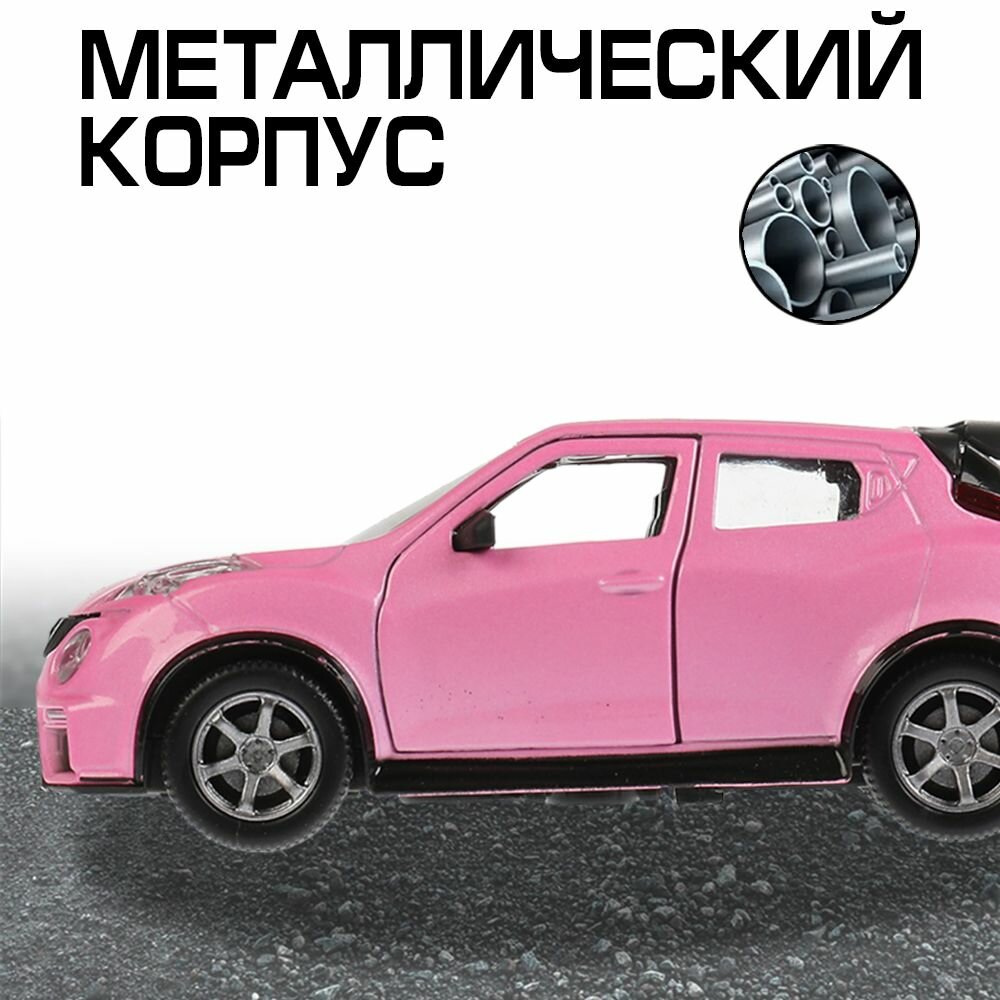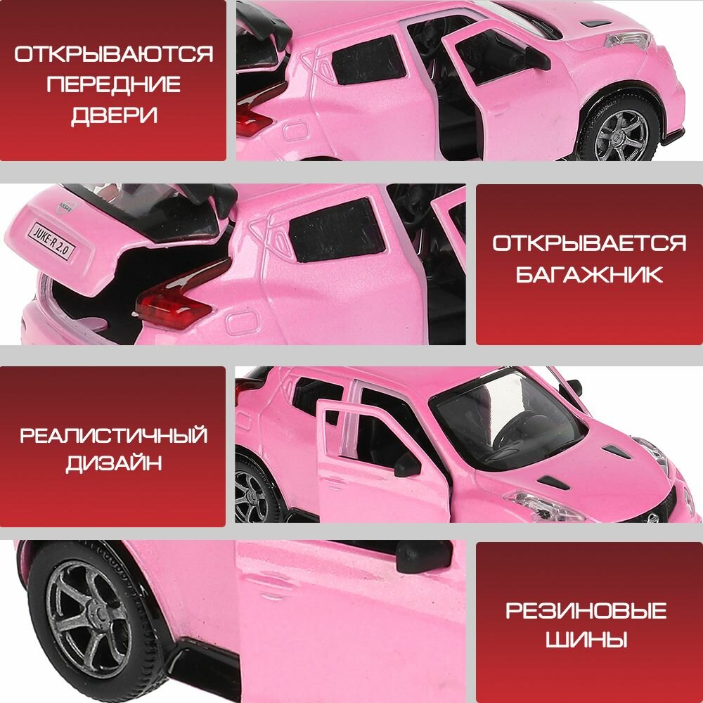 Машинка детская Nissan Juke-R 2.0 12 см, Технопарк, розовая, открываются двери и багажник, металлический корпус