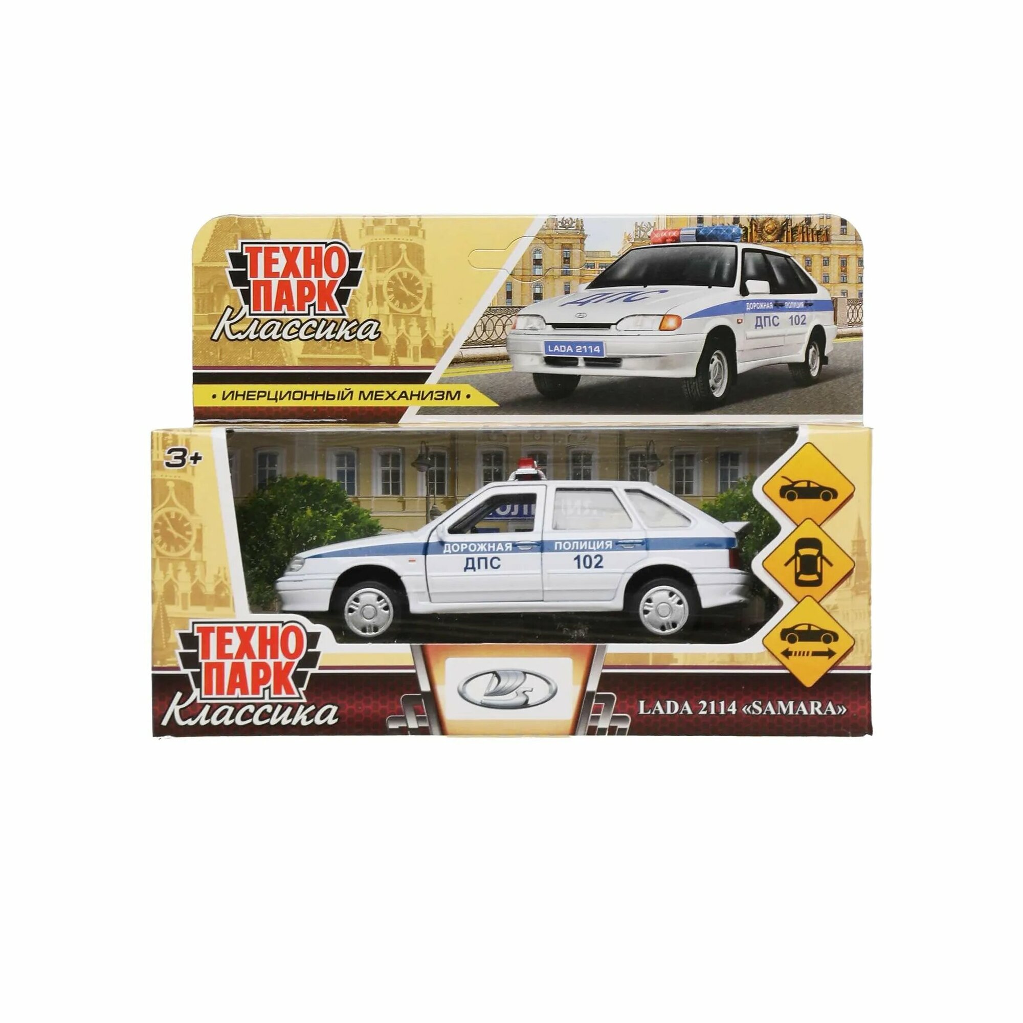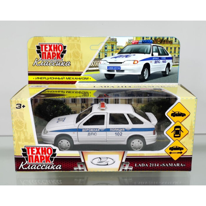 Купить Автомобиль металлический инерционный LADA-2114 SAMARA полиция серия классика 12 см Цвет Белый технопарк 2114-12POL-WH