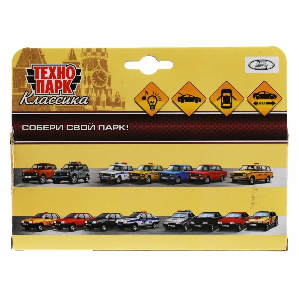 Машинка детская Лада ВАЗ 2107 Жигули 12 см, Технопарк, желтая, открываются двери и багажник, металлическая