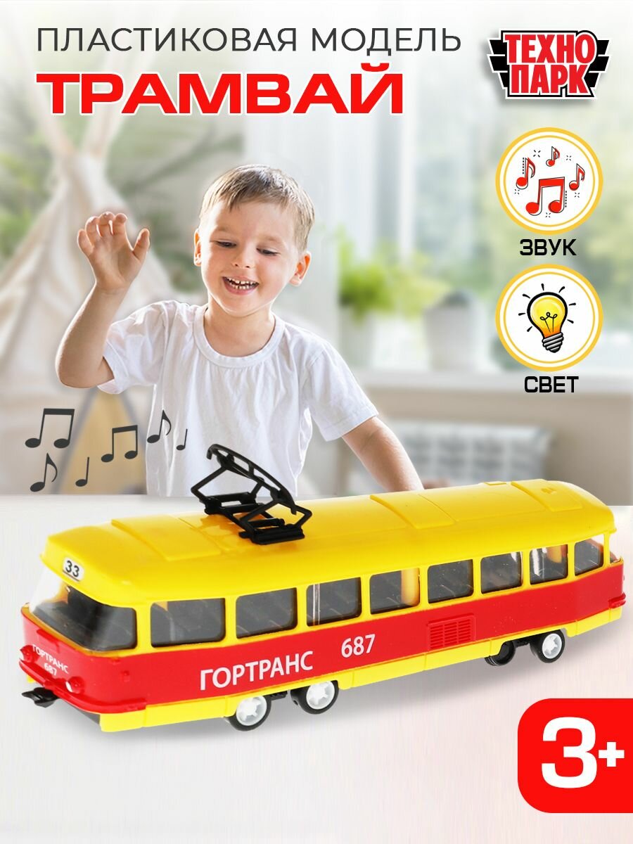 Купить Трамвай Технопарк Гортранс, желто-красный, пластиковый 2004I022-R