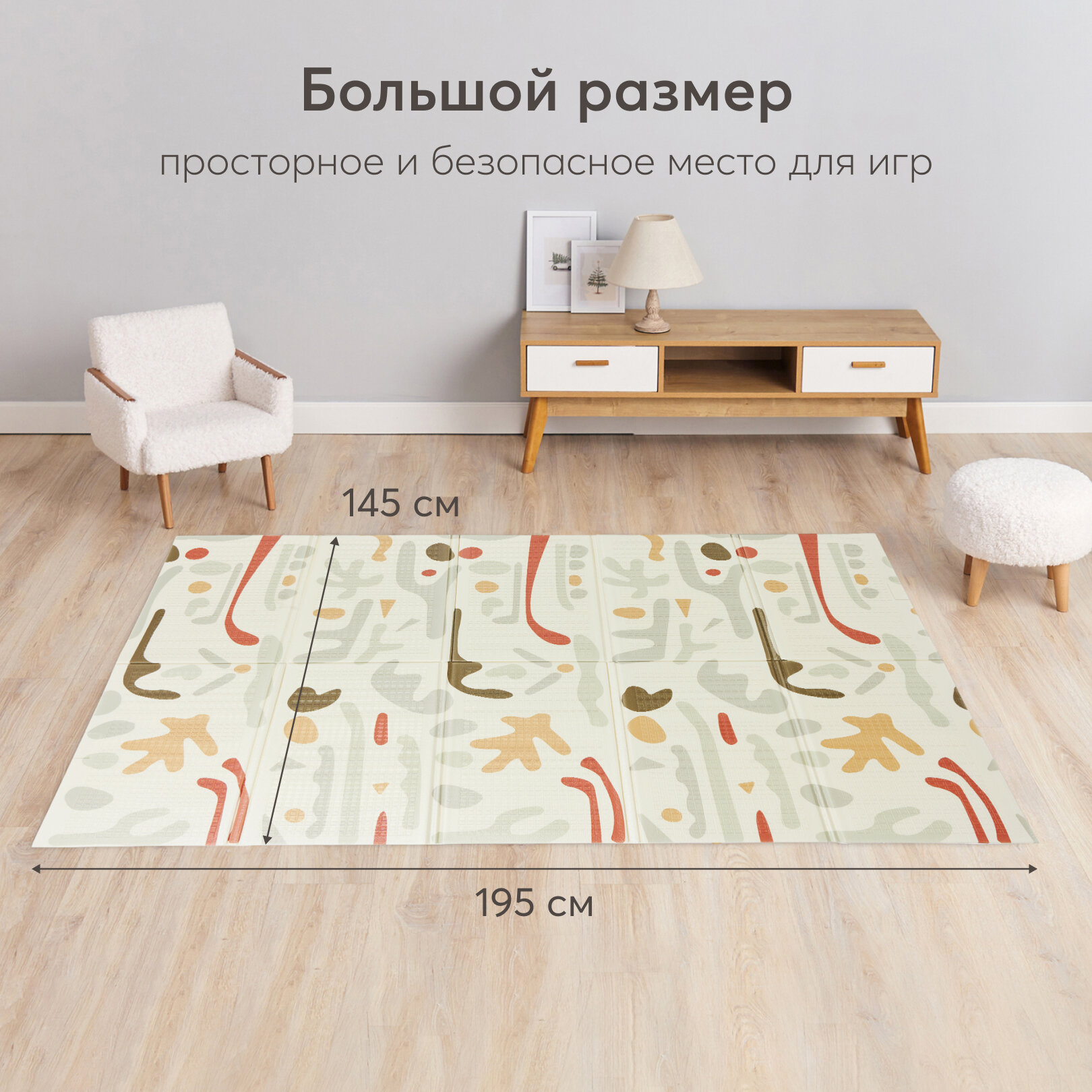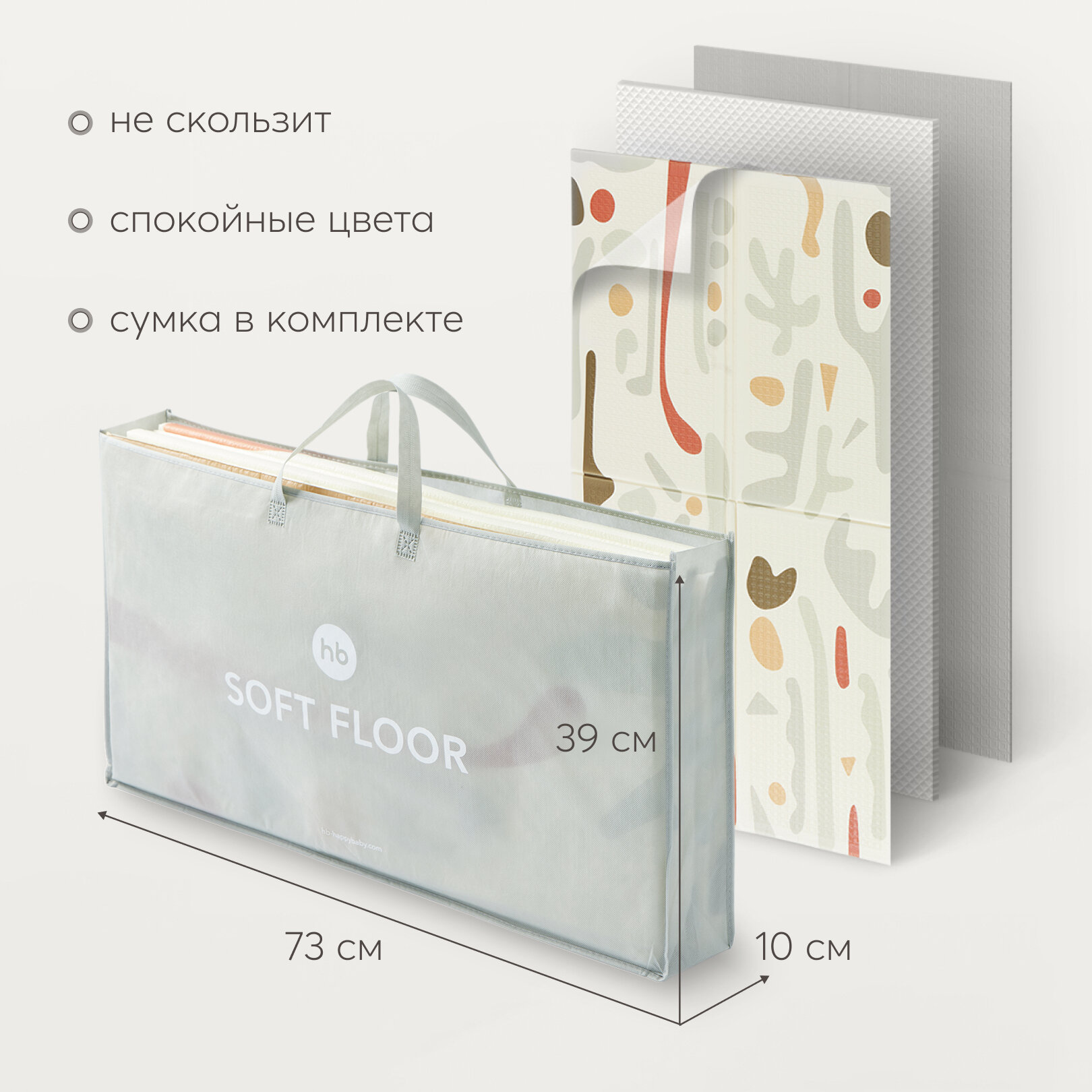 331902, Коврик детский игровой Soft Floor массажный, развивающий коврик детский для ползания, рельефная поверхность, складной, непромокаемый, с чехлом, абстрактные цветы