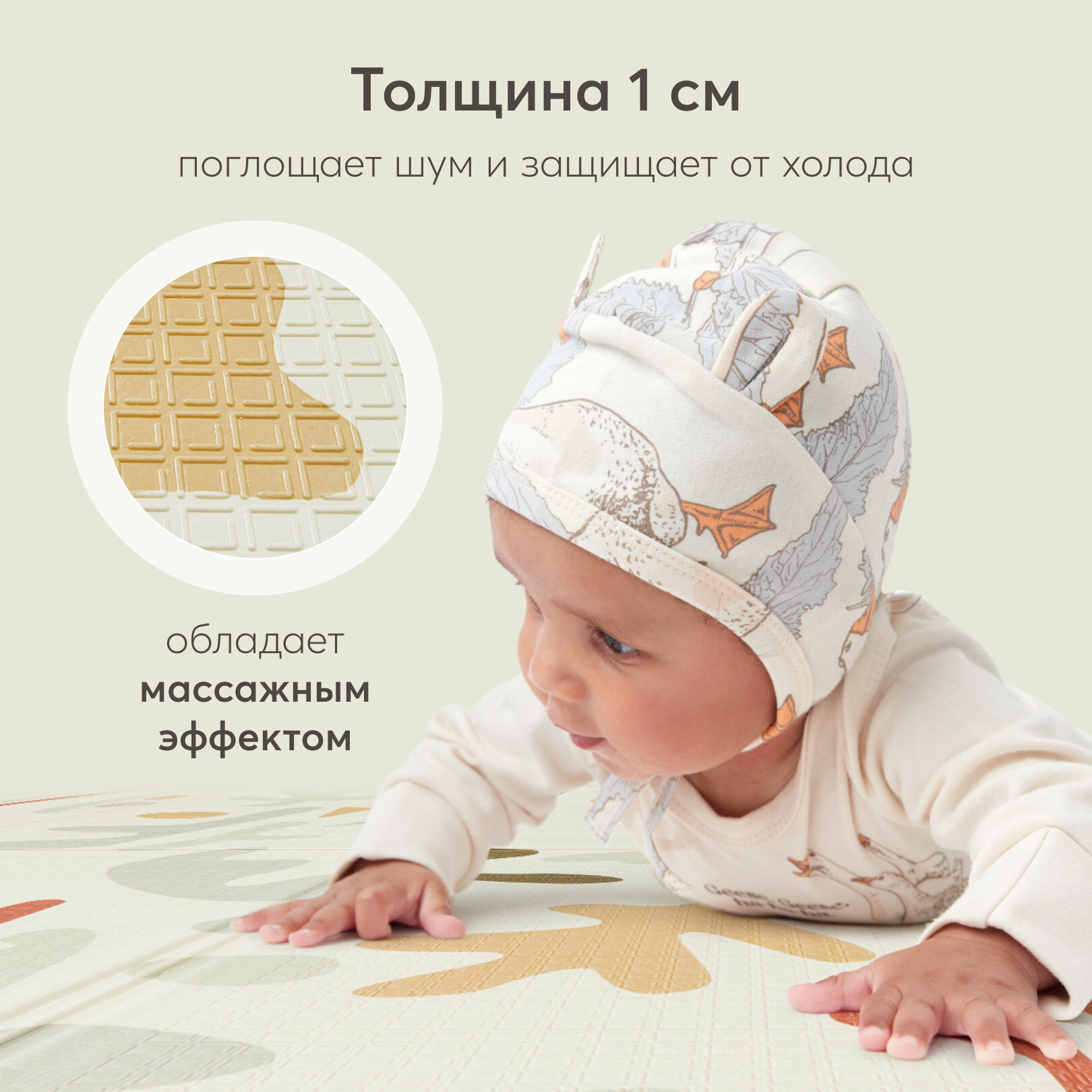 331902, Коврик детский игровой Soft Floor массажный, развивающий коврик детский для ползания, рельефная поверхность, складной, непромокаемый, с чехлом, абстрактные листья