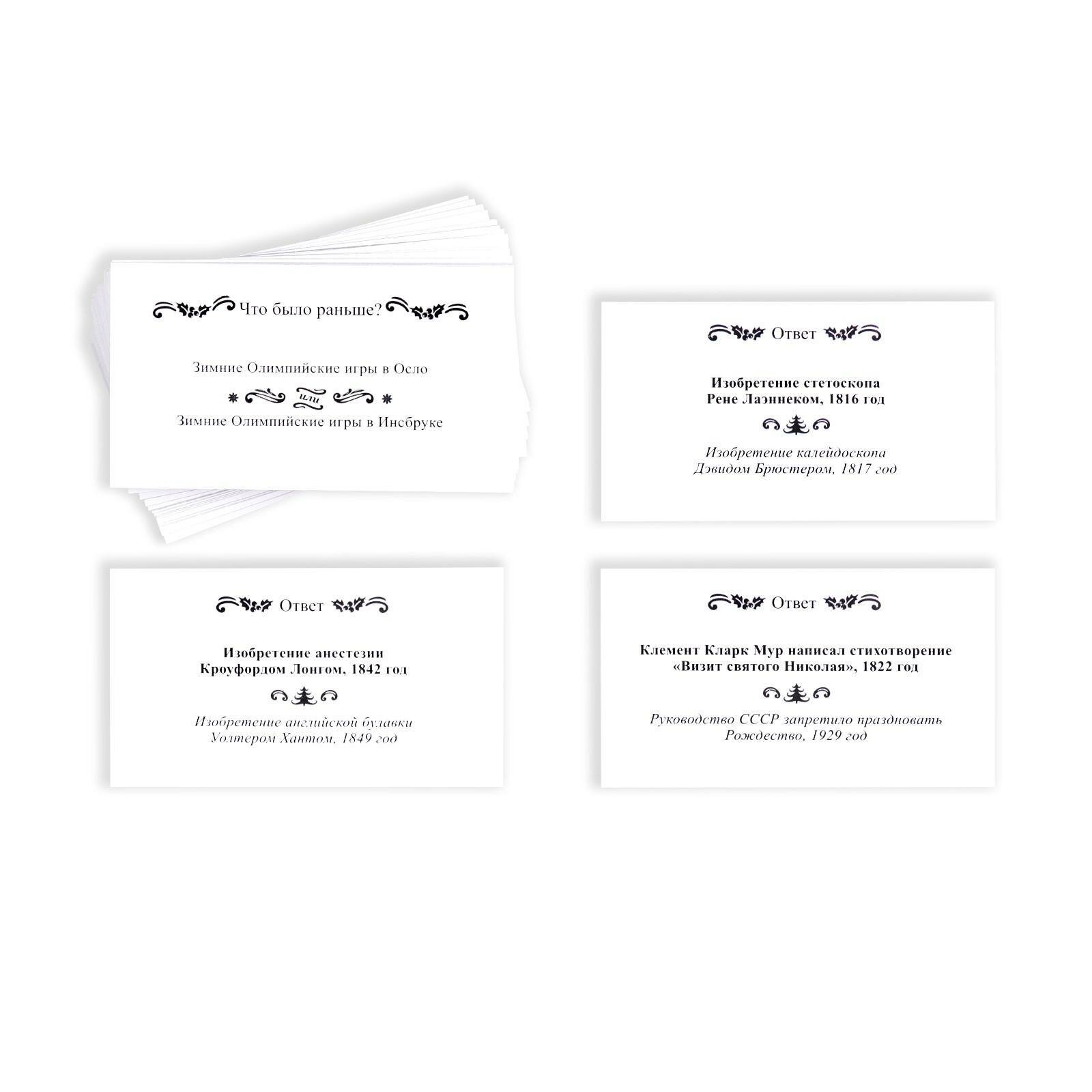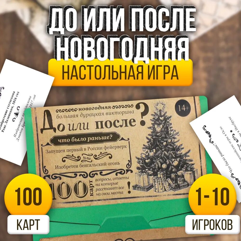 СохранитьНовогодняя настольная игра "Новый год: Большая дурацкая викторина. До или после", 100 карт, 14+, ЛАС играс интересное: