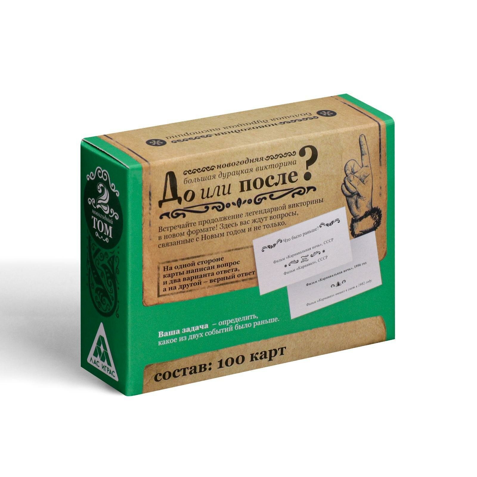 Купить Новогодняя настольная игра "Новый год: Большая дурацкая викторина. До или после", 100 карт, 14+, ЛАС играс