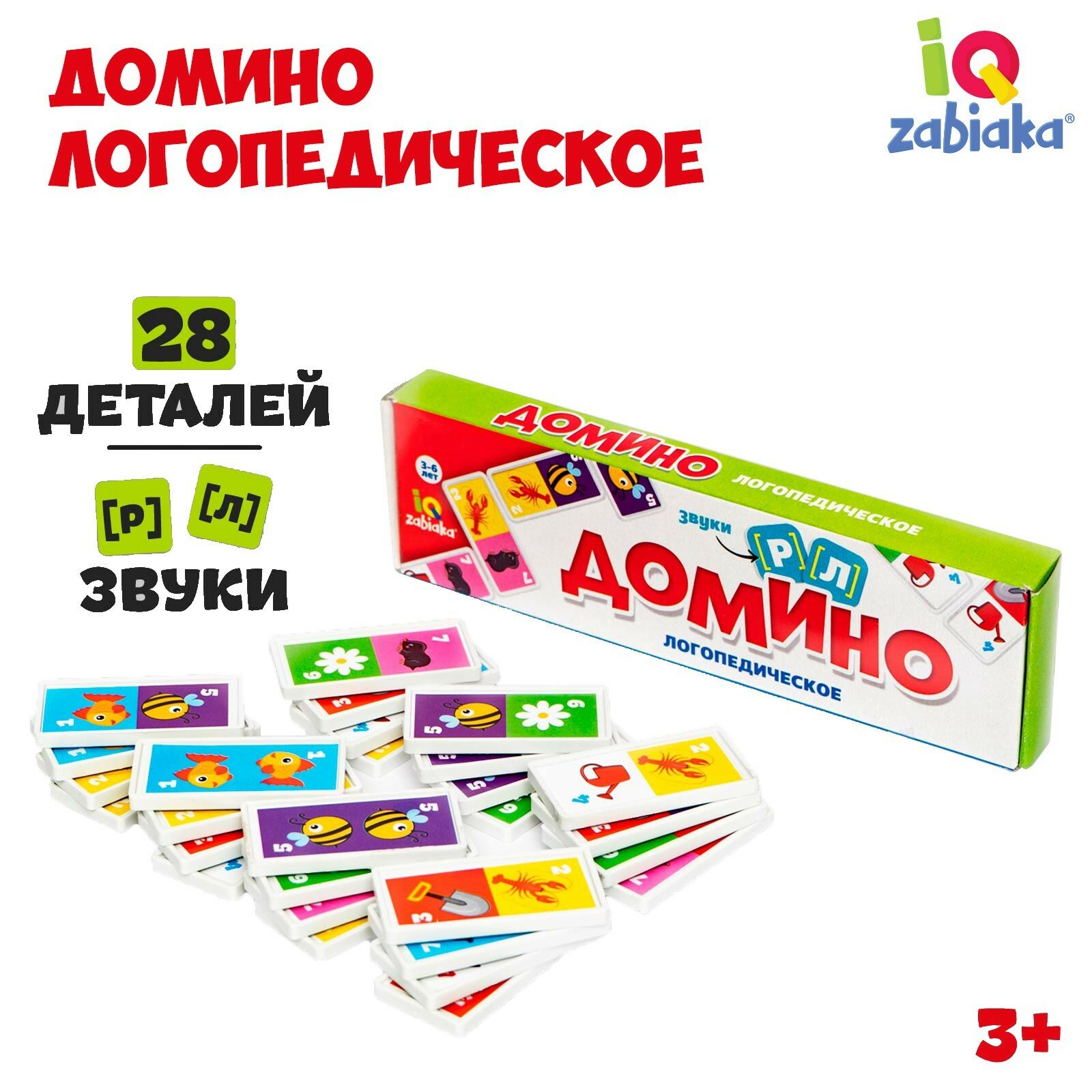 Домино IQ-ZABIAKA "Логопедическое", звуки Р и Л, пластик, 28 элементов, от 3 лет