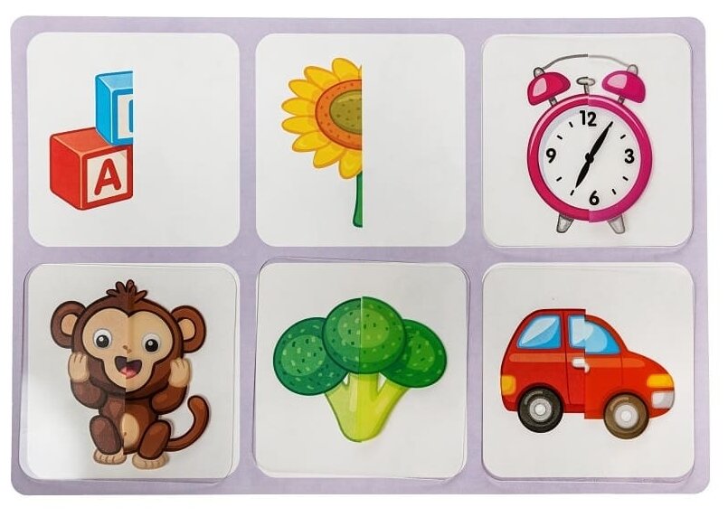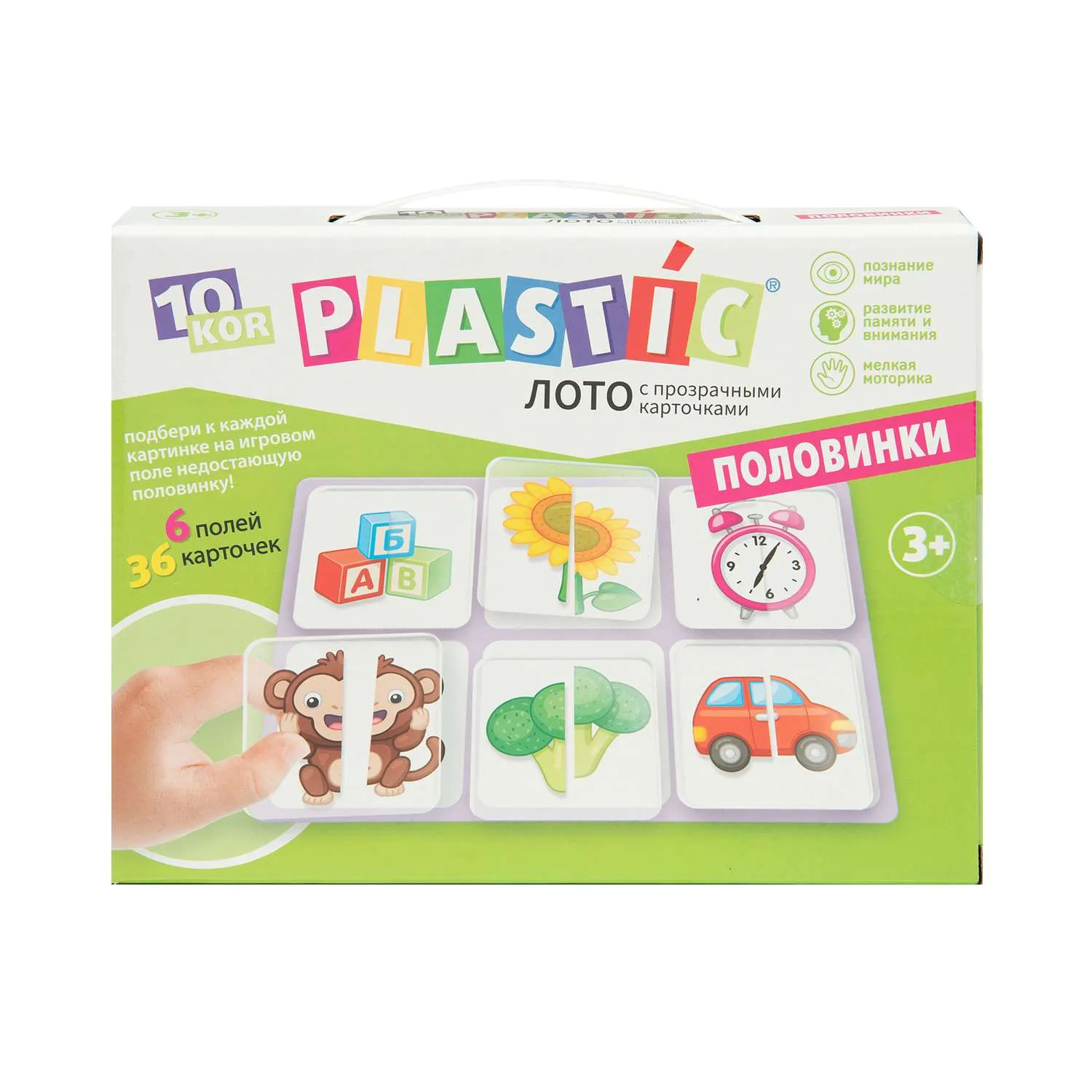 Купить Детское пластиковое лото "Половинки", настольная развивающая игра-головоломка для детей, 36 разрезных прозрачных картинок-половинок + 6 полей