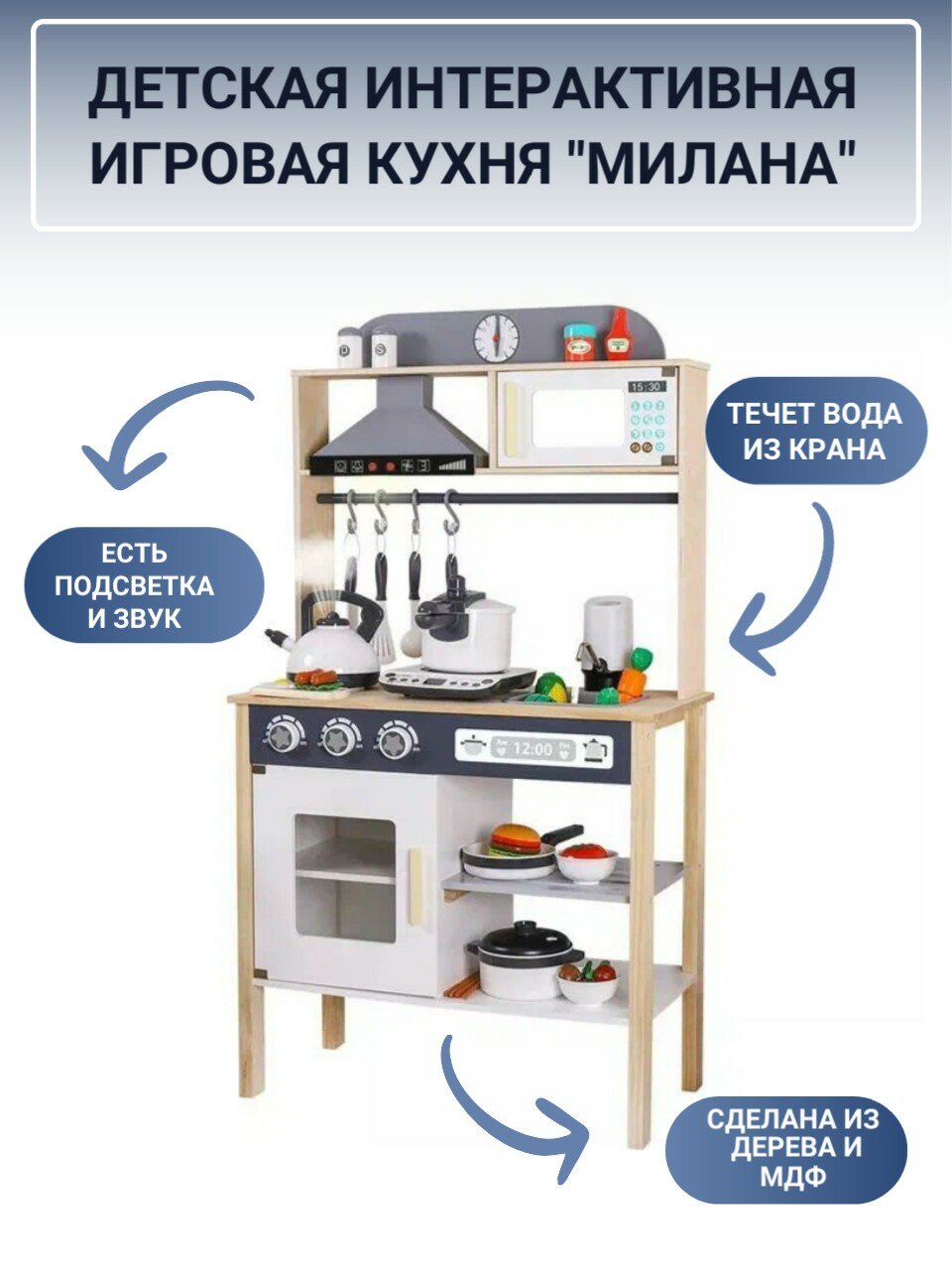 СохранитьКухня детская игровая из дерева "милана" с функцией воды (Свет+Звук) интересное: