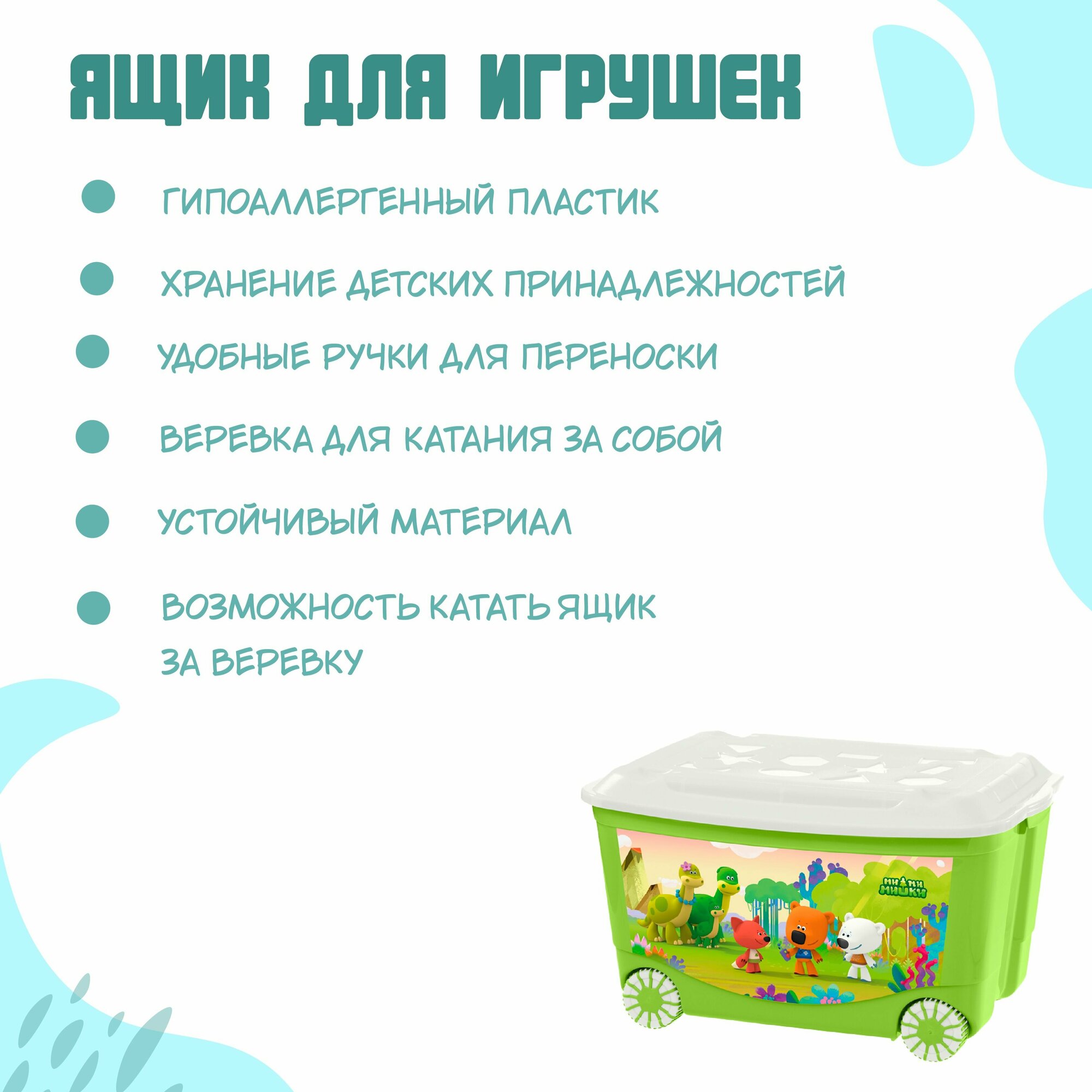 Ящик для игрушек Пластишка "Ми-Ми-Мишки", Зеленый, на колесах с декором, 580х390х335 мм, 45 л (431329909)